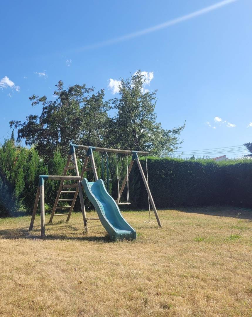 Draußen erwarten Sie eine private Terrasse und ein Garten, eine Kinderschaukel, ein komplett umzäuntes Grundstück und Parkplätze.