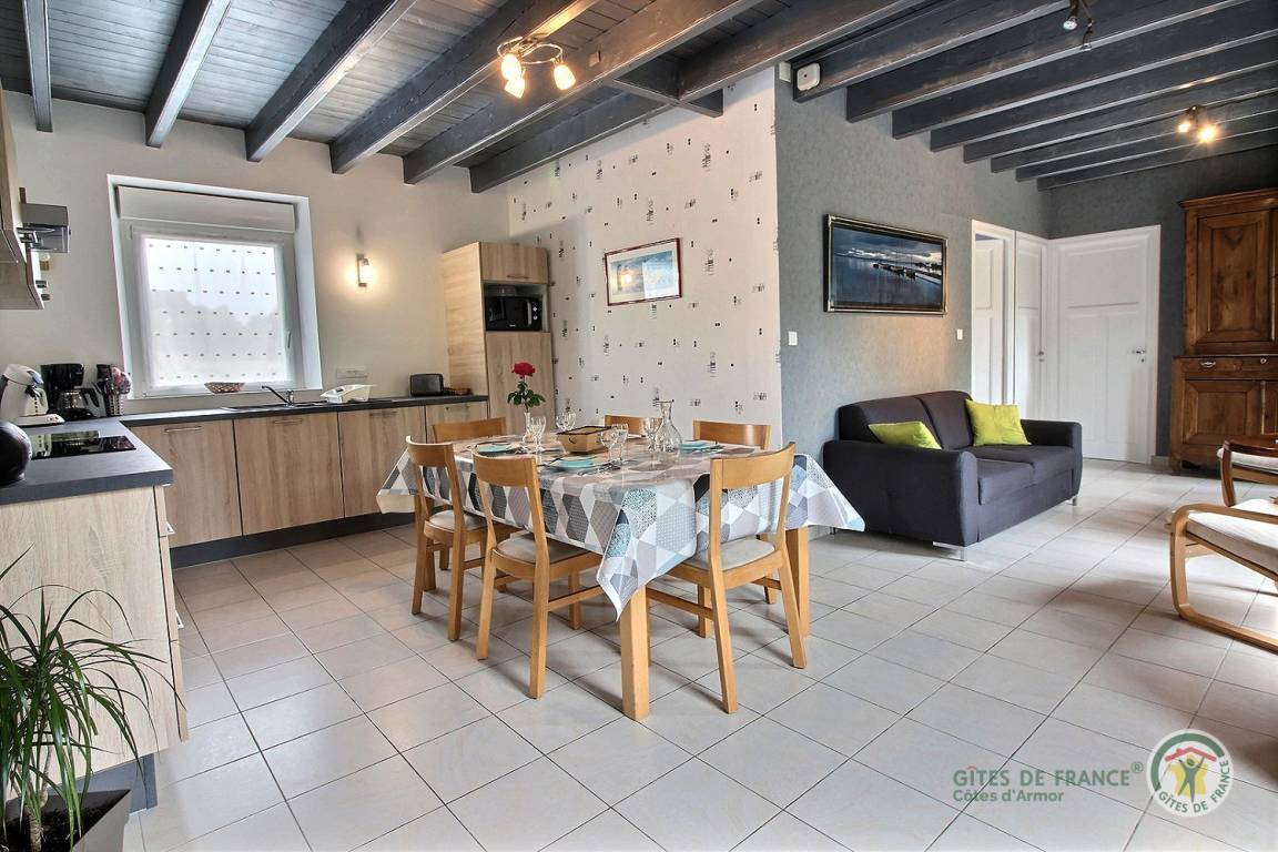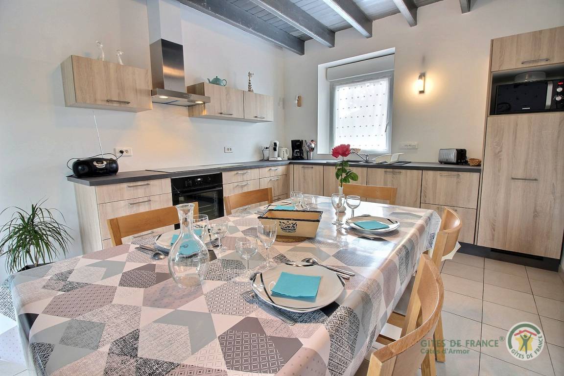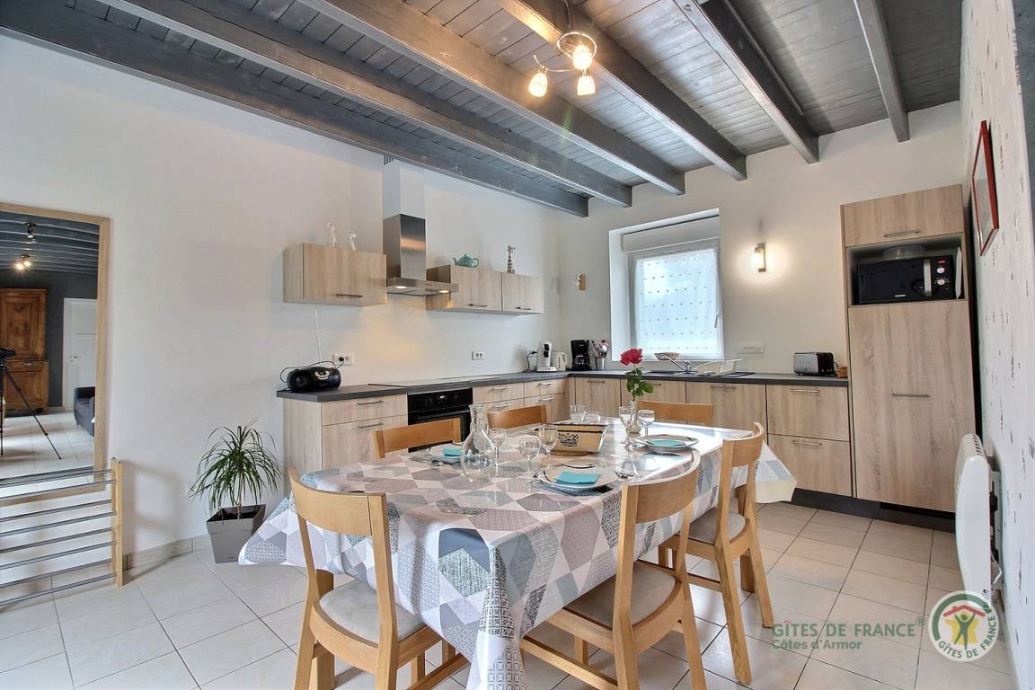 „Nous avons l'habitude de louer par "gîtes de France", le gîte se situe en haut de nos réservations, l'accueil chaleureux de nos hôtes, rien ne manque, le salon et la cuisine ensoleillés sont restés frais malgré la canicule. Le jardin nous invite à lire sous la tonnelle. Le village est très calme, la boulangerie est proche, les voisins sont sympathiques. nous connaissions l'Ouest de St Brieuc, l'Est de Lamballe, nous avons découvert en marchant le patrimoine et les paysages entre ces 2 villes (Maison de la baie, les Etangs Neufs, le Chaos du Gouët, le lac de Saint-Barthélémy, etc..), ainsi que Quintin et Moncontour, Ce séjour nous a paru court, nous reviendrons.“
