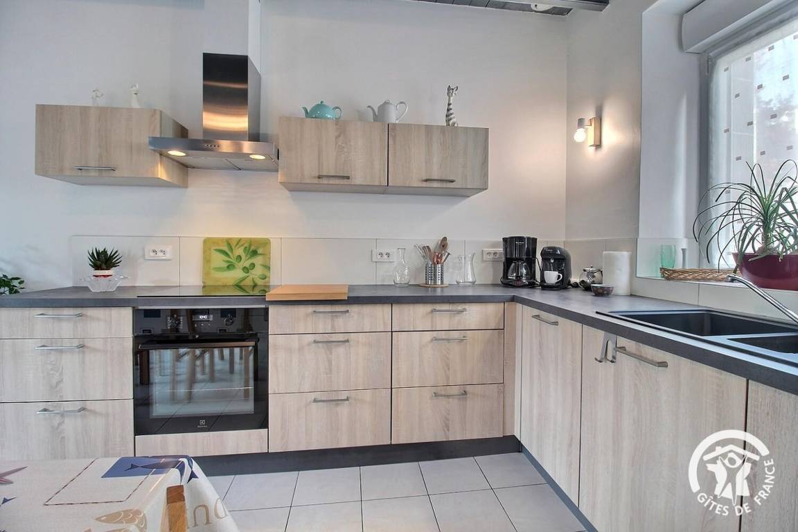 Ihre Ferienwohnung umfasst auf einer Ebene: hübsche Einbauküche mit Essbereich, Wohnzimmer, zwei Schlafzimmer (1 Doppelbett und 2 Einzelbetten), Badezimmer mit Dusche und Badewanne, WC. Privater Garten von 600 m². Das Plus dieses Ferienhauses: zwei Mountainbikes für Erwachsene zur Verfügung und eine Tischtennisplatte. Voll ausgestatteter Telearbeitsplatz (Bürotyp). Die Miete beinhaltet neben dem Außenparkplatz eine geschlossene Garage.