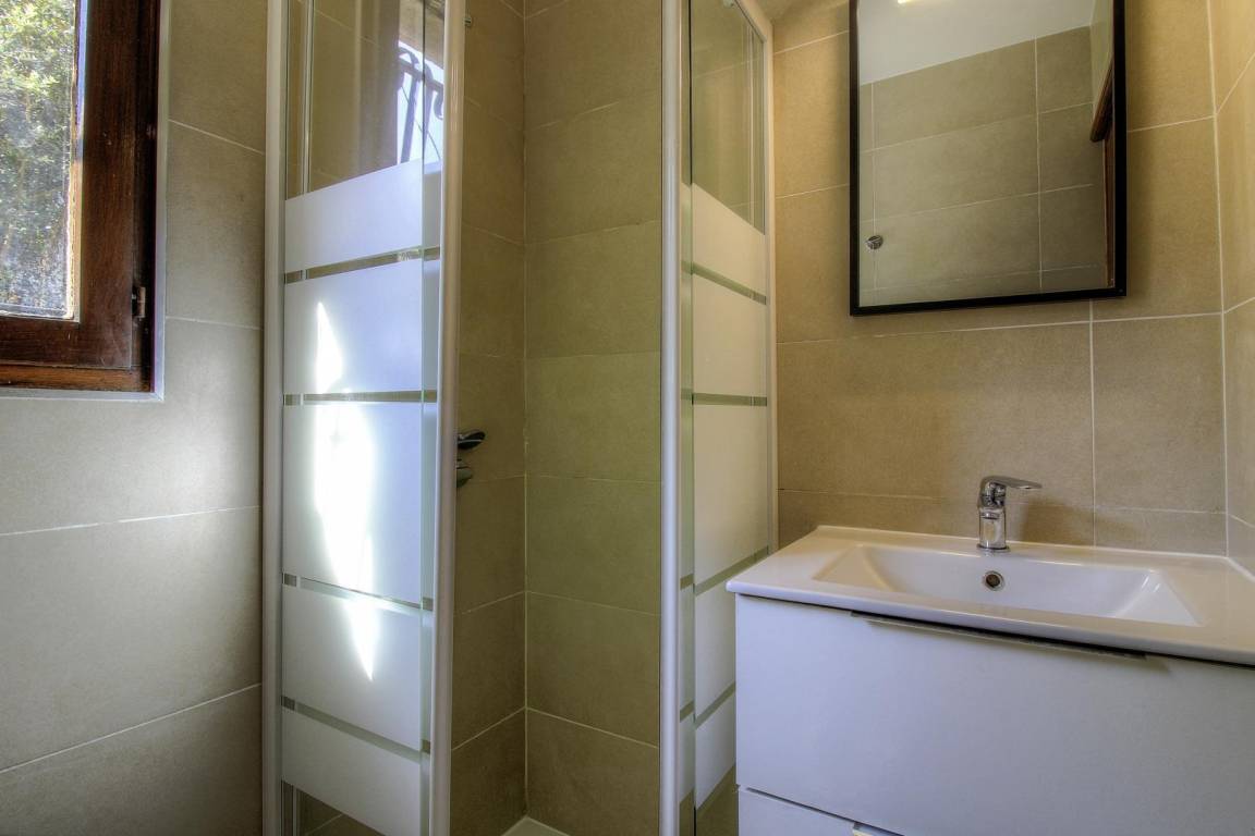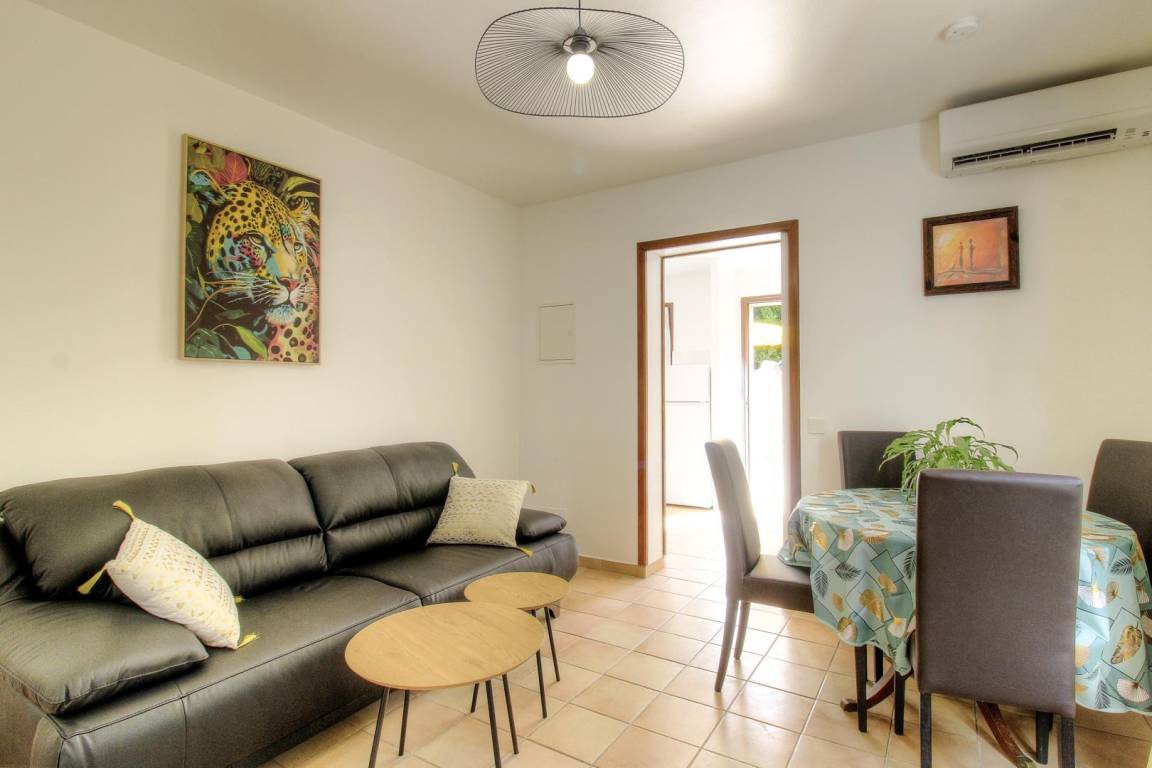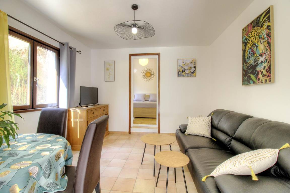 Dieses Ferienhaus von 28 qm mit unabhängigem Eingang befindet sich im 1. Stock des Hauses der Eigentümer, das auch ein weiteres Ferienhaus im Erdgeschoss (21301) und eine weitere Vermietung umfasst. Es setzt sich wie folgt zusammen :