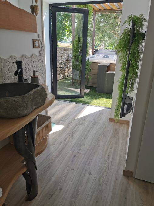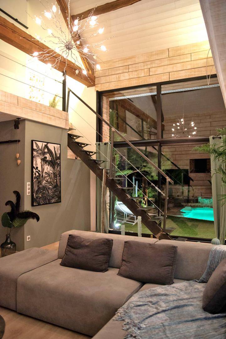 Mit ganzem Herzen haben sie ihre 125 m² große Scheune im Geiste von Green and Steel in ein privates Loft mit gemütlicher und raffinierter Dekoration umgebaut. Der provenzalische Garten inspiriert zur Fülle, seine mit Skulpturen aus Glas und Stahl verzierte Dekoration, der Fischteich, das beheizte Schwimmbad mit Gegenstromanlage (6 x 2,50 m), ein wunderschönes Spa für 6 Personen, ein echter Entspannungsbereich. Im Inneren werden Sie von der Atmosphäre und der Liebe zum Detail überrascht sein. Die amerikanische Küche ist in den großen, komfortablen Wohn- und Loungebereich integriert, ausgestattet mit High-Tech-Geräten. Und für Fans: Billard. Die Höhe unter dem Dach ist im Zwischengeschoss und in der Dekoration mit Musikinstrumenten erhalten geblieben. Ebenfalls im Erdgeschoss befindet sic