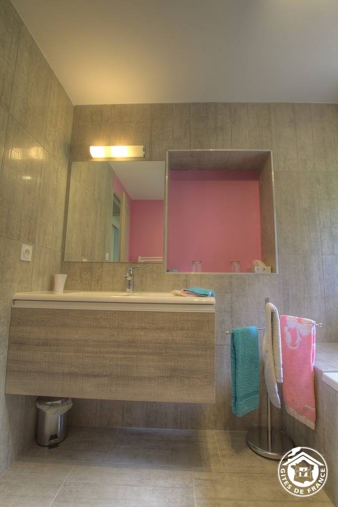 „Almost everything concerning this apartment is better than it's description on the Gites-de-France website. It's bigger than it looks on the photos, the kitchen inventory is more than abundant, beds are comfortable, the outside area is huge (front terras, back terras, garden surrounding the building, woodland, an outside kitchen c. q. dining room c. q. recreation facility. The hosts, living next to the farm, are very helpfull, proud of their property and hospitality, but also very discrete.“