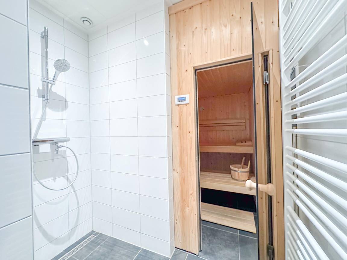 Layout : Parterre: offene Küche mit Wasserkocher, Kochherd(4 Kochplatten), Kaffeemaschine(nespresso cups), Backofen, Mikrowelle, Geschirrspüler, Kühlschrank(+ Gefrierfach) , Wohn/Esszimmer mit TV(Flatscreen, smart TV), Esstisch, Esstisch(4 Personen), Dekokamin , Schlafzimmer mit Badezimmer mit 2x Einzelbett(90 x 210 cm), TV(Flatscreen, smart TV), Dusche, Waschbecken, Toilette, Föhn , Badezimmer mit Infrarotdusche, Sauna, Waschmaschine , Toilette mit Toilette , Veranda mit Esstisch , Heizung(Zentral, Fußbodenheizung)
