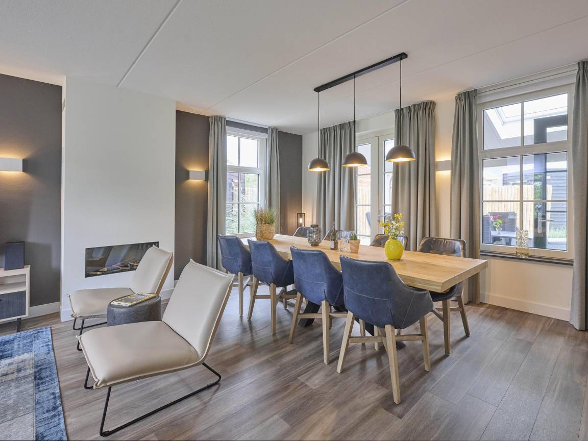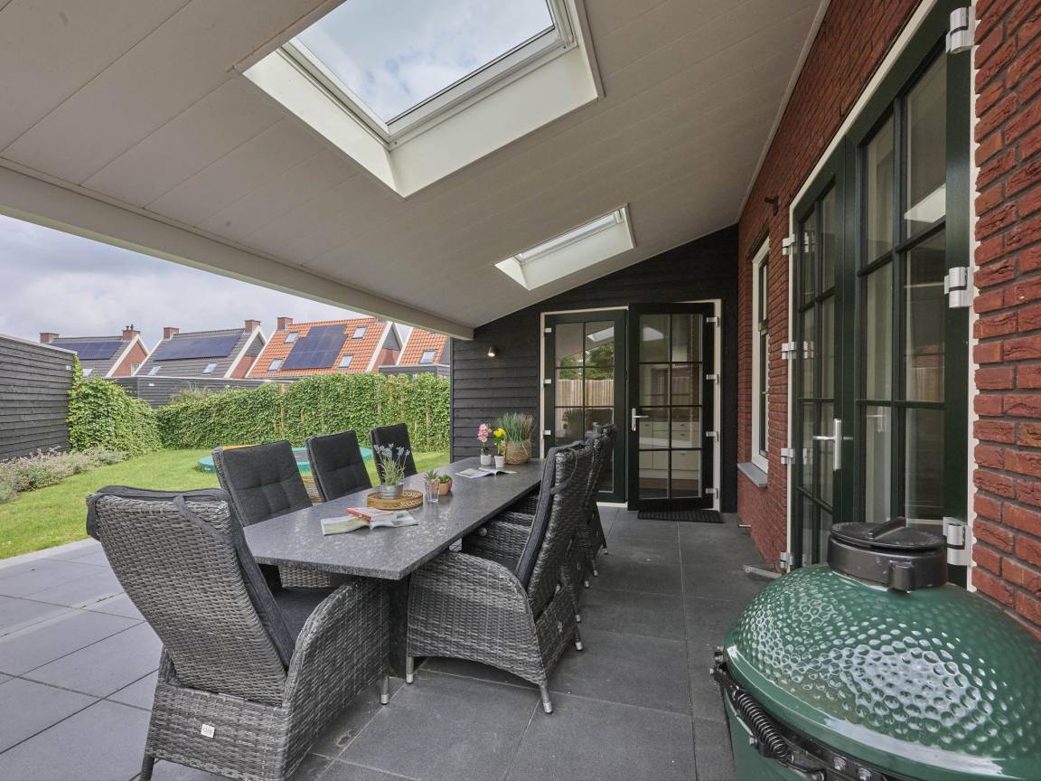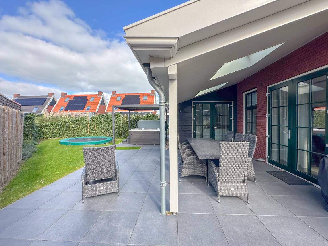 Hausbeschreibung : Diese luxuriöse Wellness-Villa liegt zentral in einem ruhigen Ferienpark und zeichnet sich durch ihren geschützten Garten mit Trampolin aus. Setzen Sie sich mit einem Buch unter die Überdachung oder zünden Sie das Green Egg an. Die Finnische Sauna, Sonnendusche und die Whirlpool bieten viel Entspannung. Das Wohnzimmer mit gemütlichem Gaskamin und die gut ausgestattete Küche vervollständigen diese Villa. Ein Sandstrand und das nette Dorf sind zu Fuß zu erreichen. Ultimatives Genießen in Zeeland!
