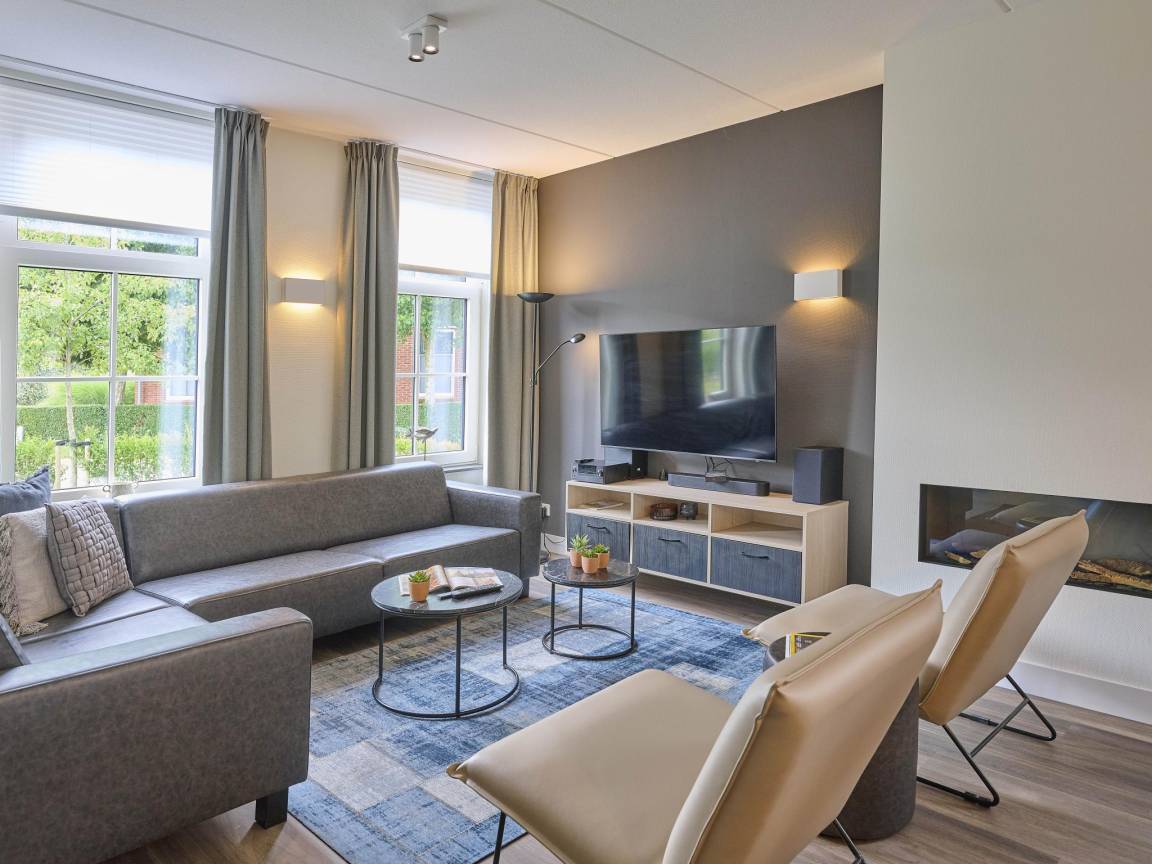 Layout : Parterre: offene Küche mit Wasserkocher, Kochherd, Dunstabzugshaube, Kaffeemaschine(nespresso cups), Backofen, Mikrowelle, Geschirrspüler, Kühlschrank(+ Gefrierfach) , Wohn/Esszimmer mit TV(Flatscreen, smart TV), Esstisch, Dekokamin, Sitzecke , Schlafzimmer mit Badezimmer mit 2x Einzelbett(90 x 210 cm), Dusche, Waschbecken, Toilette, Föhn , Badezimmer mit Dusche, Infrarotdusche, Sauna, Toilette , Toilette mit Toilette , Abstellraum mit Wäschetrockner, Waschmaschine, Staubsauger