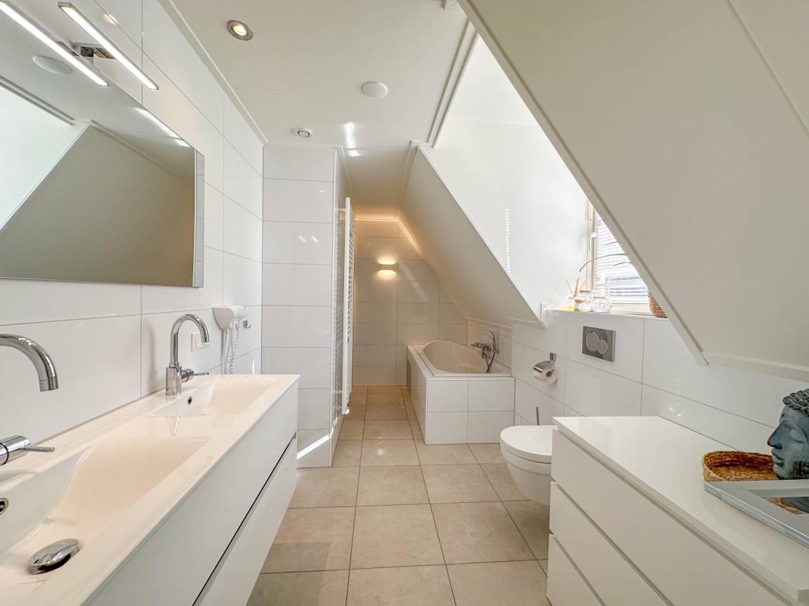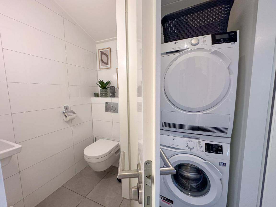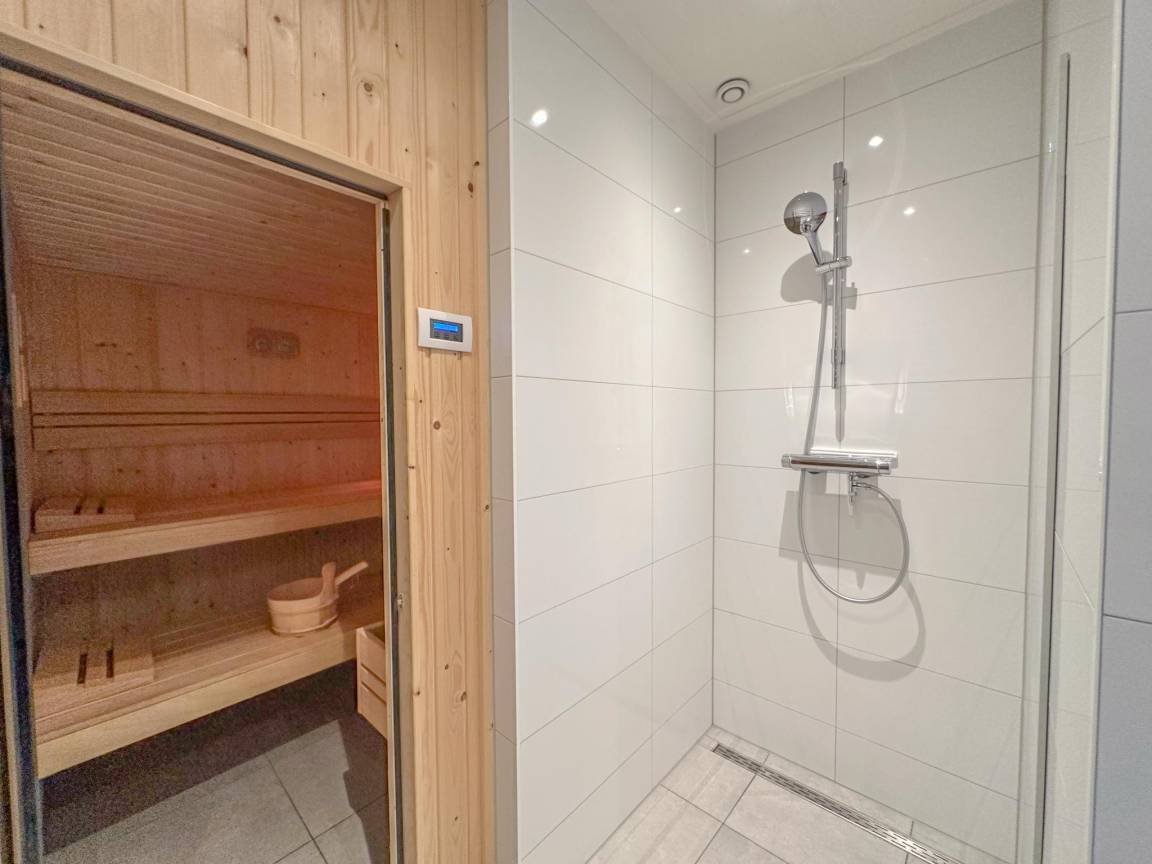 Layout : Parterre: offene Küche mit Wasserkocher, Kochherd, Dunstabzugshaube, Kaffeemaschine(nespresso cups), Backofen, Mikrowelle, Geschirrspüler, Kühlschrank(+ Gefrierfach) , Wohn/Esszimmer mit TV(Flatscreen, smart TV), Esstisch, Dekokamin, Sitzecke , Schlafzimmer mit Badezimmer mit 2x Einzelbett(90 x 210 cm), Dusche, Waschbecken, Toilette, Föhn , Badezimmer mit Wäschetrockner, Dusche, Infrarotdusche, Sauna, Toilette, Waschmaschine , Toilette mit Toilette , Abstellraum mit Staubsauger
