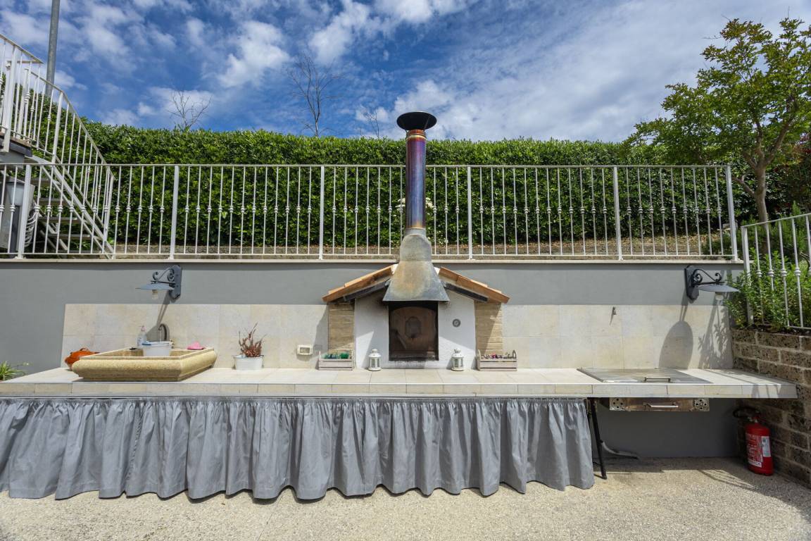 Wohnküche: gut ausgestattete Küche, Esstisch, Spülmaschine, Kühlschrank, Tiefkühler, Mikrowelle, Herd, Holzofen, Ofen, Toaster, Italienische Kaffeemaschine, Amerikanische Kaffeemaschine, Sessel, Kamin, Doppel-Schlafsofa, Sofa bed, WiFi Internet, Klimaanlage, Satelliten-TV, TV, Ausgang auf den Patio.