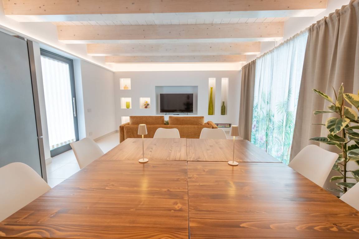Esszimmer: Esstisch, Ausgang auf die Terrasse.