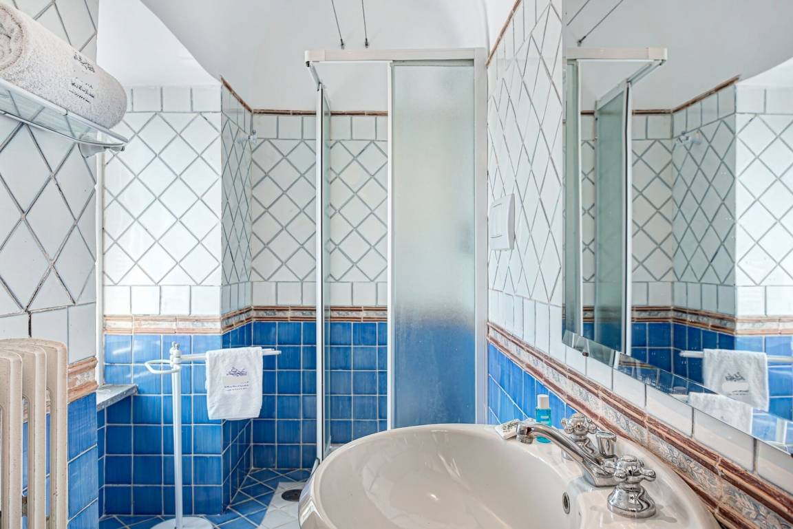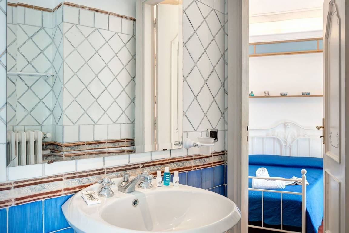 Schlafzimmer mit Bad 1: Doppelbett, WiFi Internet, Klimaanlage, Satelliten-TV, Waschbecken, WC, Bidet, Dusche, Fön.