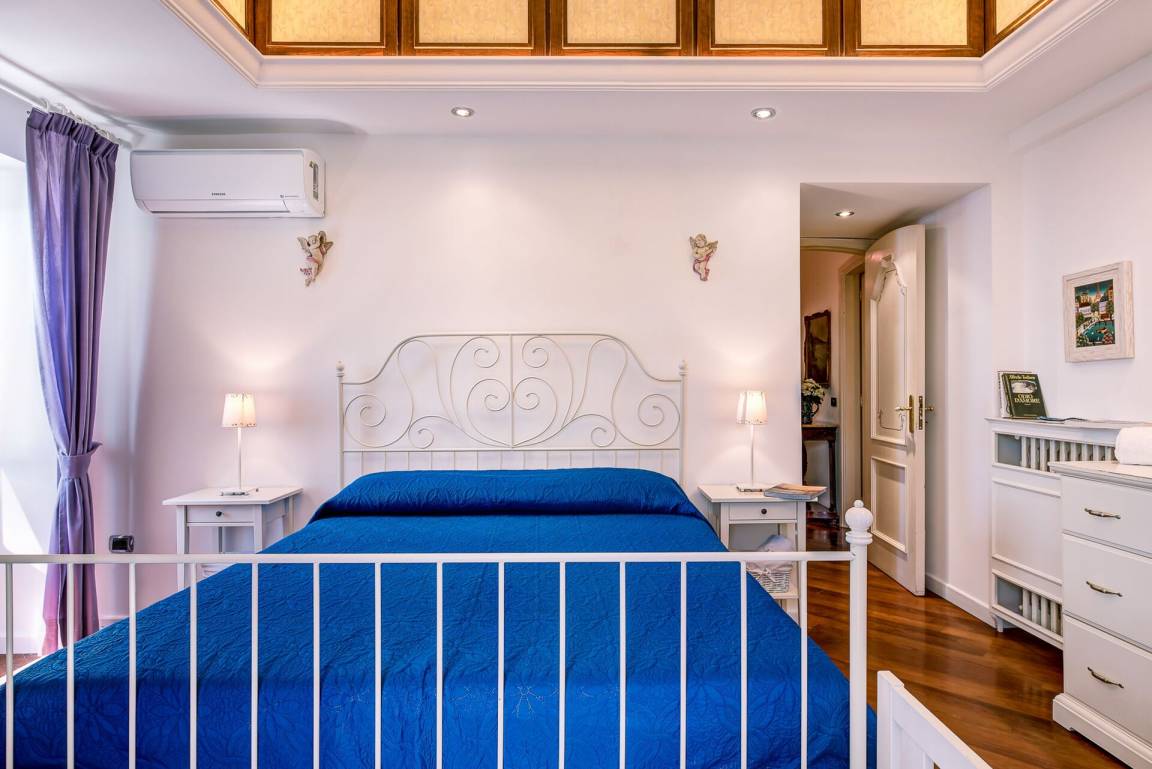 Schlafzimmer mit Bad 2: Doppelbett, WiFi Internet, Klimaanlage, Satelliten-TV, Waschbecken, WC, Bidet, Dusche, Fön, Ausgang auf den Balkon.