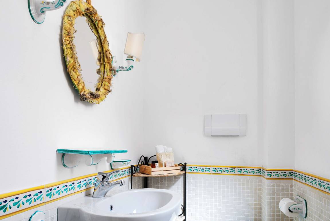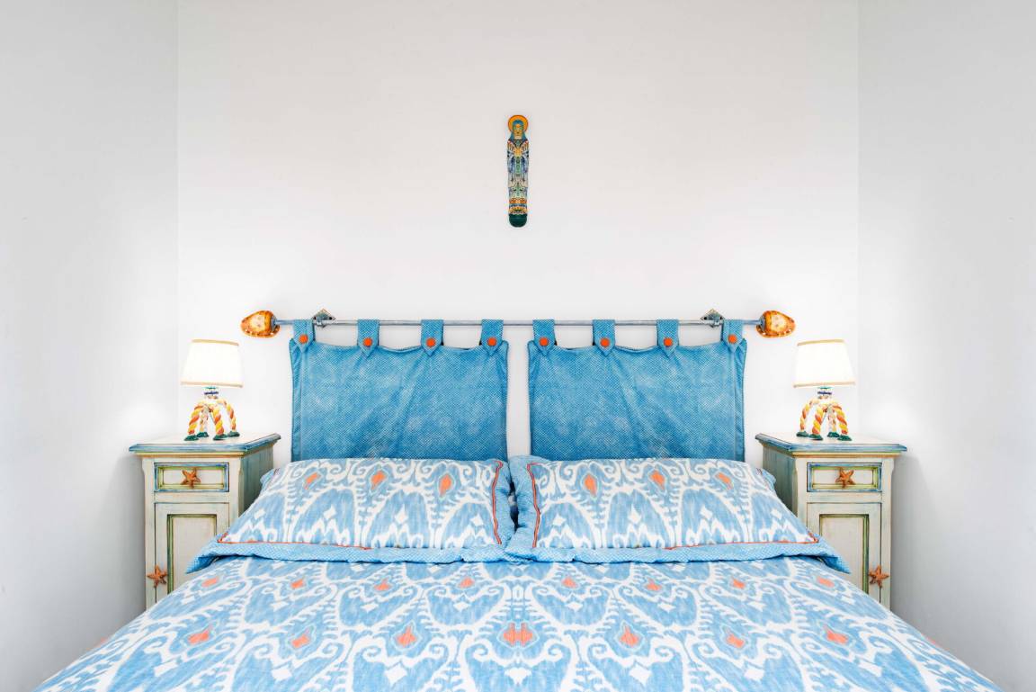 Schlafzimmer mit Bad: Doppelbett, WiFi Internet, Klimaanlage, Waschbecken, WC, Bidet, Dusche, Fön, Ausgang auf die Terrasse.