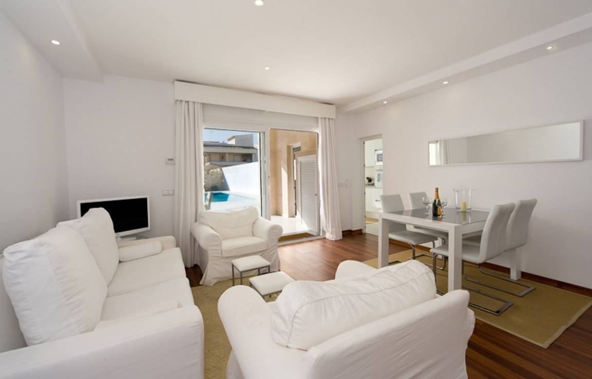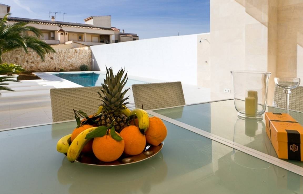 Moderne Ferienwohnung mit Luxusausstattung und eigenem Pool in 2. Meereslinie von Colónia Sant Jordi.