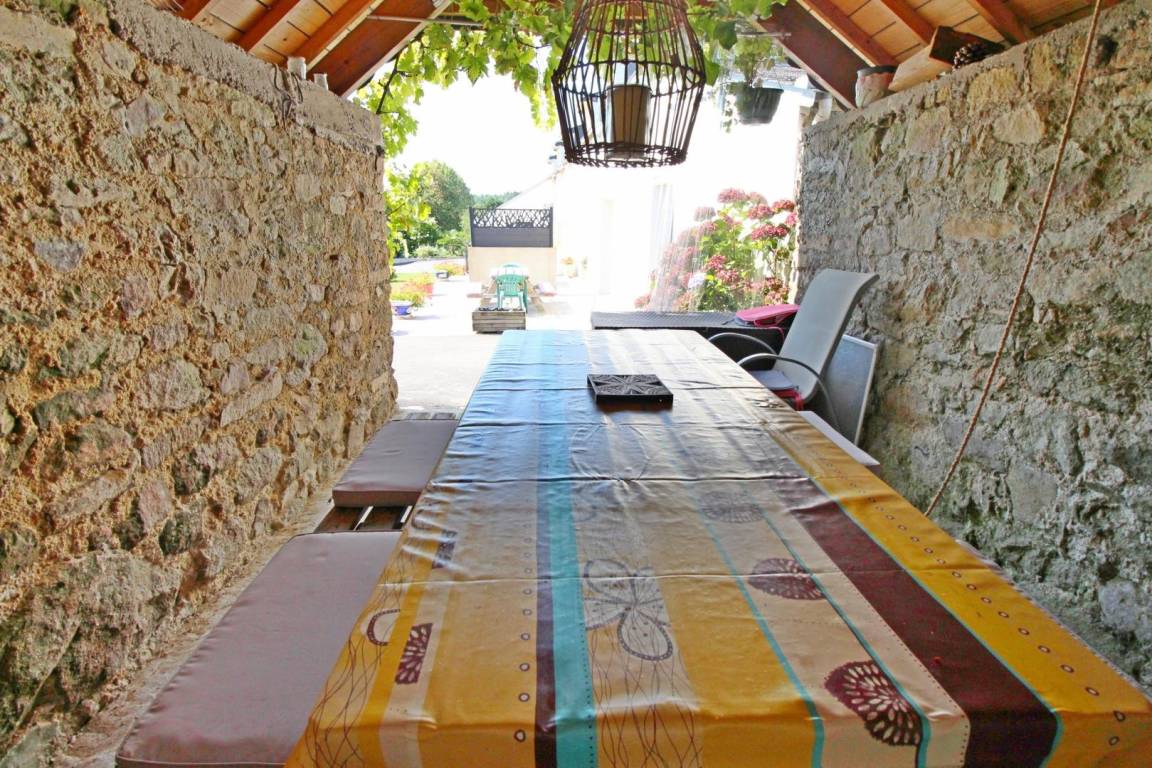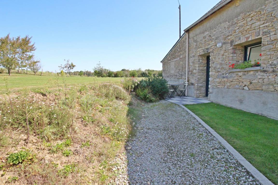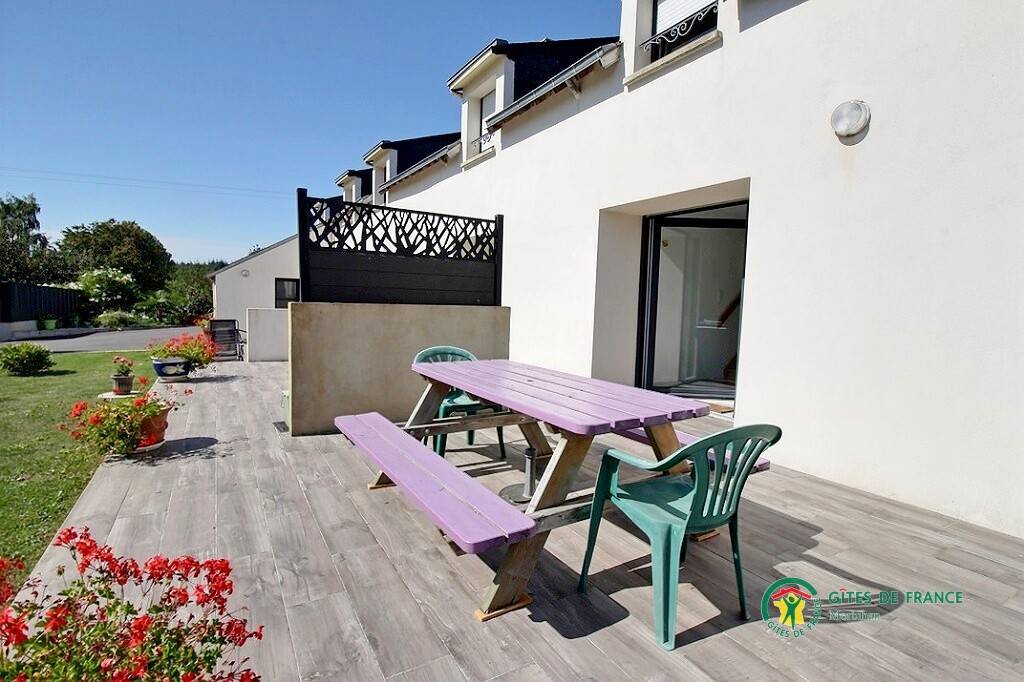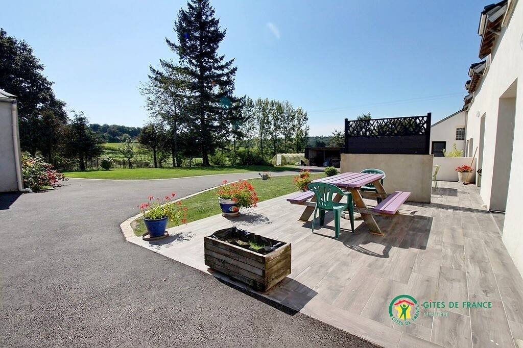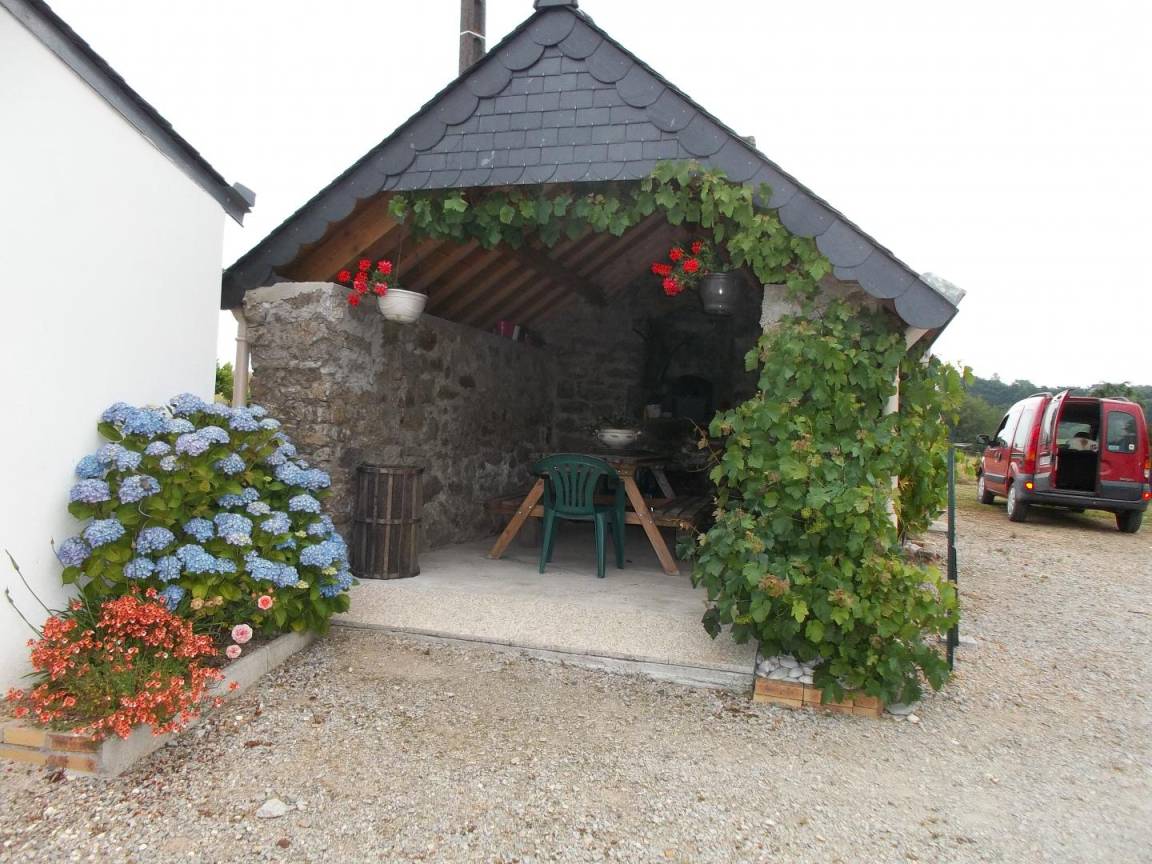 Private Terrasse mit Gartenmöbeln. Gite neben dem Haus des Eigentümers mit Gemeinsamkeit: Garten mit kleinem Teich, Waschküche (Waschmaschine), überdachter Fahrradschuppen.