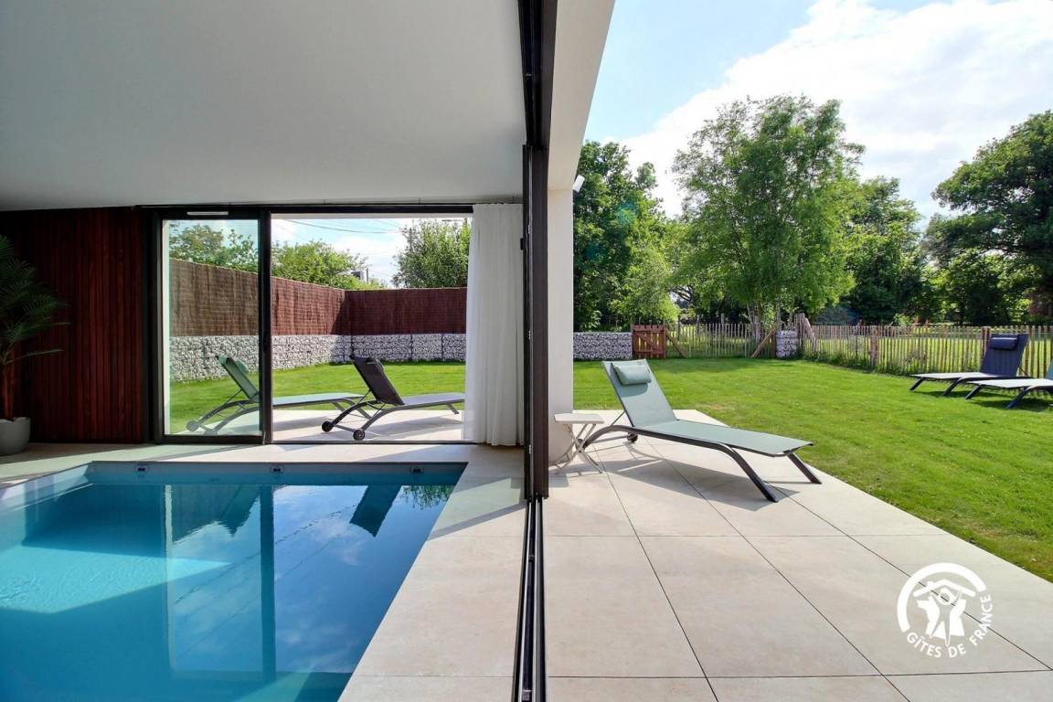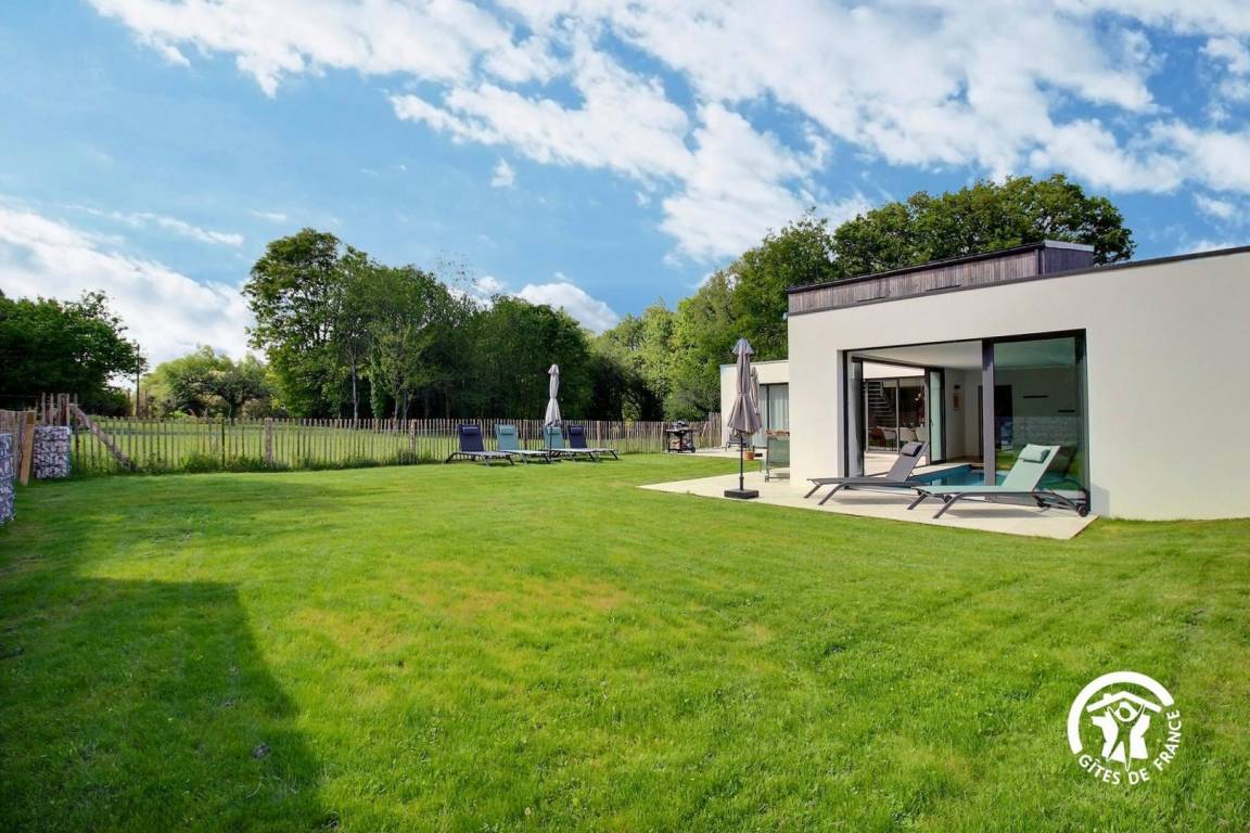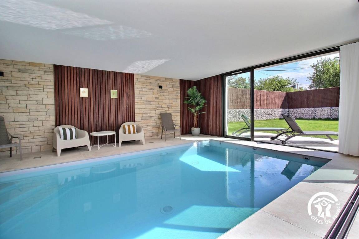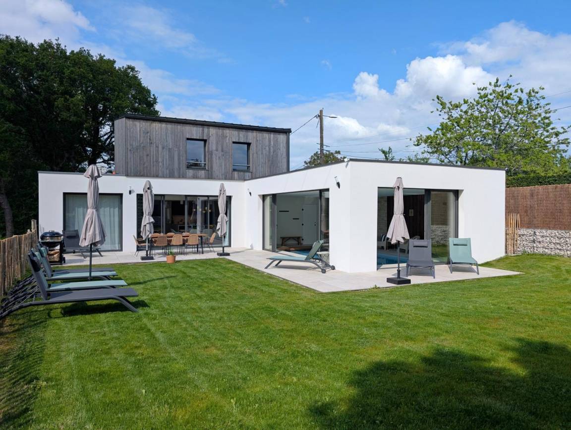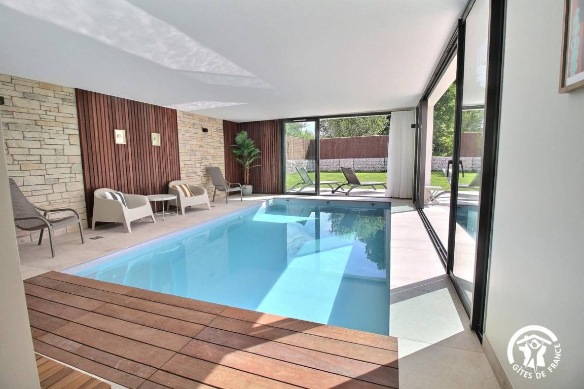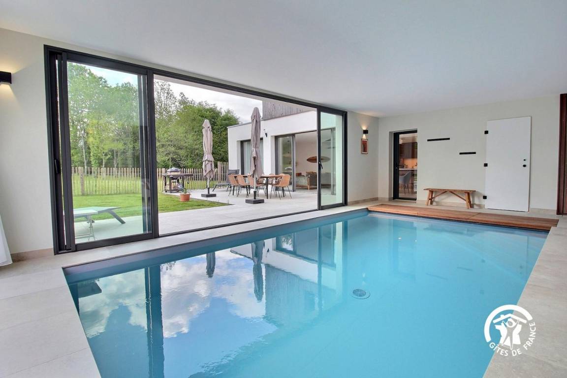 „Grand week-end reposant sous le soleil dans une magnifique maison contemporaine. Contact très sympathique avec Benoît (merci pour le petit mot et les petites attentions) et merci pour avoir proposé de rester jusqu'en fin d'apès-midi. La maison est très propre, très bien équipée (linge de lit, de toilette, huile, épices, café, thé...) on se sent comme chez soi. Grandes baies vitrées donnant sur la nature, pas de vis à vis. La piscine intérieure a été très appréciée. Maison au calme sans être isolée, à une dizaine de minutes à pied du bourg (boulangerie, alimentation, et autres commerces). Maison à recommander. Si l'occasion se présente, nous y reviendrons.“