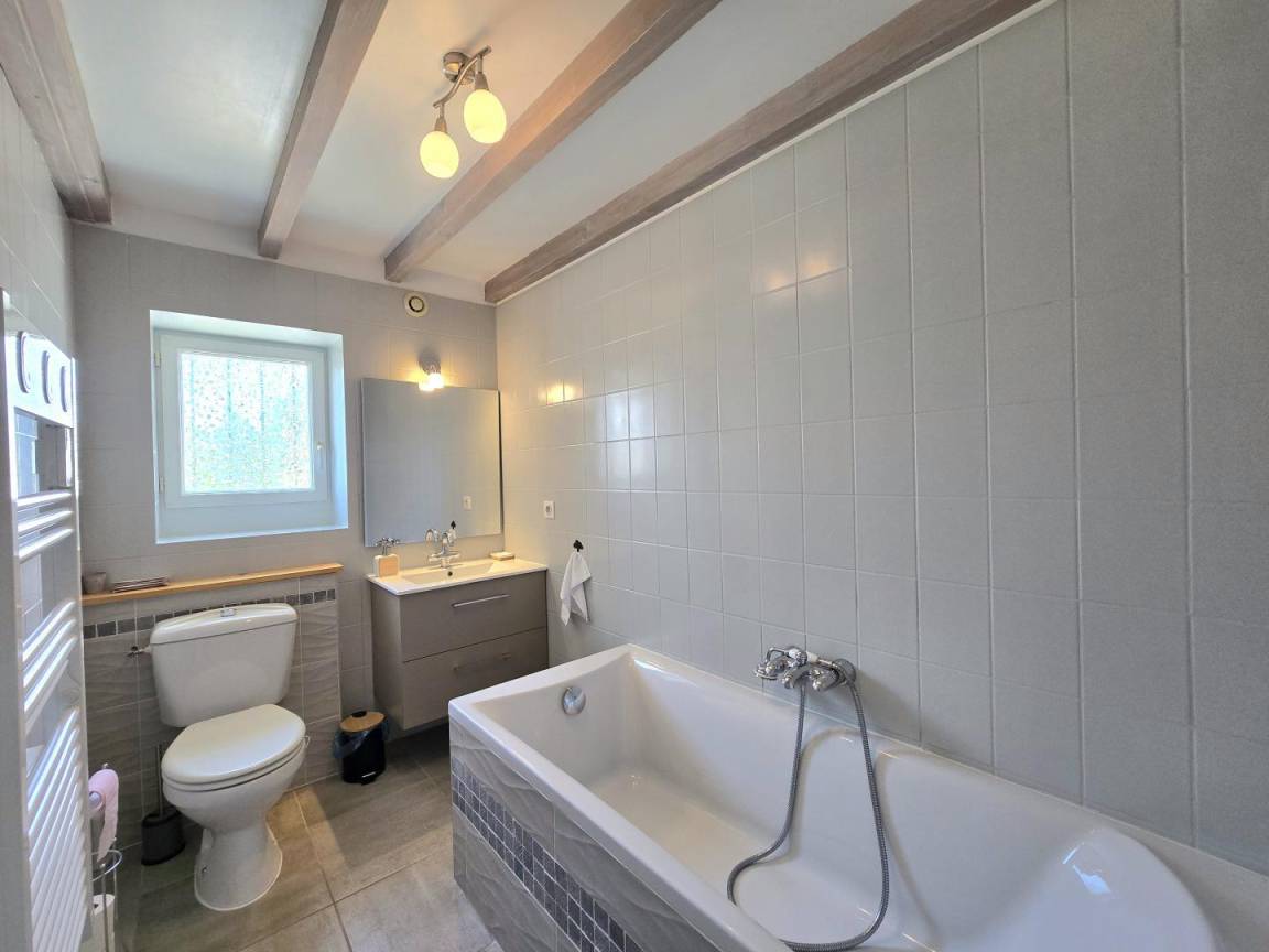 „Confortable, grande tv, salon agréable sur la mezzanine, poêle à granulés. Peut-être une couette pour l'hiver en plus pour les frileux. Merci pour le séjour.“