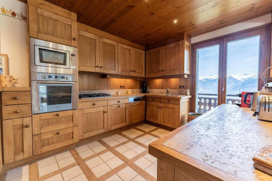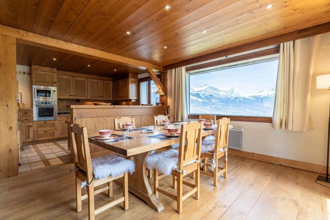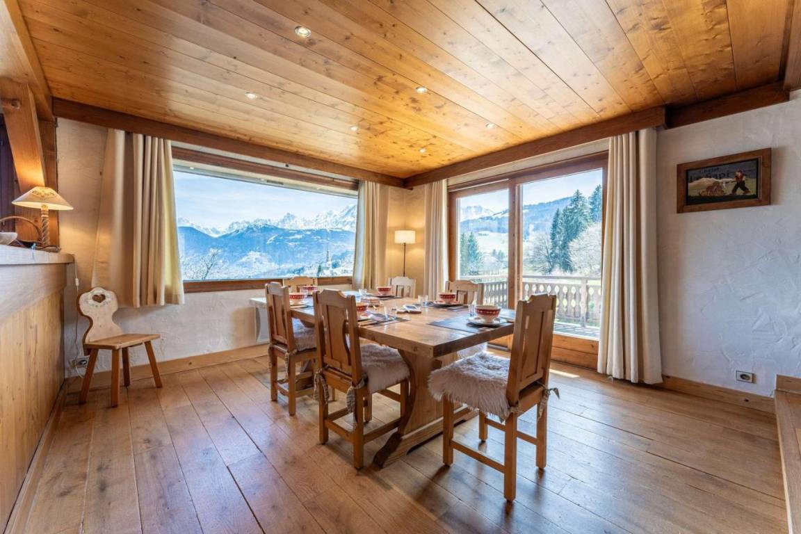 Mitten im Herzen des Dorfes Combloux gelegen, vereint das rustikale, 200 m² große Chalet Sapi alpinen Charme mit familiärem Komfort. Mit atemberaubendem Blick auf den majestätischen Mont Blanc und den malerischen Glockenturm der Kirche von Combloux verspricht es sowohl im Sommer als auch im Winter eine idyllische Lage. Das Dorfzentrum und die Geschäfte sind bequem zu erreichen. Ideal für einen Urlaub mit Familie oder Freunden, bietet das Chalet fünf einladende Schlafzimmer, die mit Naturholz und einer gemütlichen Atmosphäre bestechen. Fläche von ungefähr 200 m². 3te Etage. Blick berg (Mont-Blanc). Niveau 0 : Wohnzimmer mit Kamin. 2 Schlafzimmer mit Doppelbett. 3 Schlafzimmer mit 2 Einzelbetten. Kochnische mit Backofen, Geschirrspülmaschine, Mikrowellenherd. 3 Badezimmer. Terrasse mit . Waschmaschine. Niveau -1 : Spielzimmer mit Baby-foot, Billard.