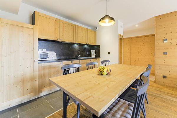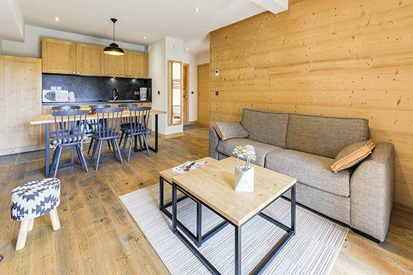 Die 4-Sterne-Residenz Les Fermes du Mont Blanc befindet sich im Zentrum des Dorfes Combloux. Sie wurde im Einklang mit der Bergtradition mit Holz und Stein gebaut. Sie wohnen in einem luxuriösen Apartment oder einem gut ausgestatteten Halbchalet mit herrlicher Aussicht auf die sonnigen Berge. Entspannen Sie sich während Ihres Urlaubs einfach im Innenpool. Fläche von ungefähr 80-95 m². Orientierung : Ost. Blick berg (Mont-Blanc). Wohnzimmer mit Klappschlafcouch (140*190). Schlafzimmer mit Doppelbett (160*190). 2 Schlafzimmer mit 2 Einzelbetten (90) oder 2 Stockbetten. Küche mit Wasserkocher, Kaffeemaschine, Backofen, Toaster, Geschirrspülmaschine, Mikrowellenherd, 2 Glaskeramikkochfelder, Kühlschrank. Badezimmer mit Haartrockner, Handtuchtrockner. Waschräume. 2 WCs. Balkon. Die oberen Betten sind nicht für Kinder unter 6 Jahren geeignet.