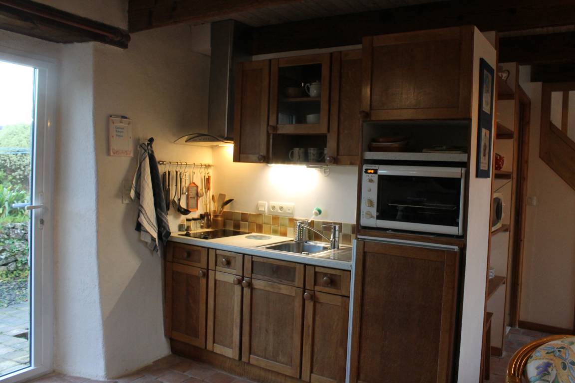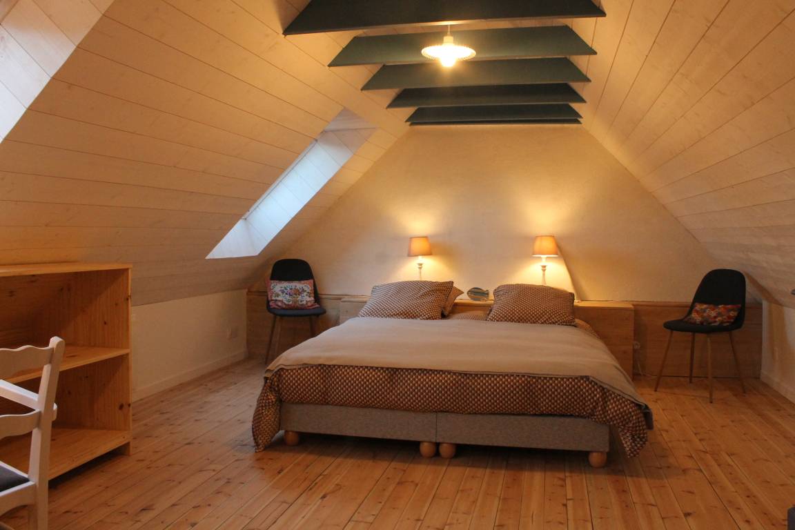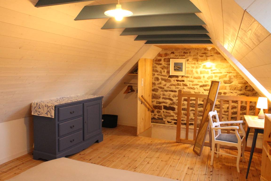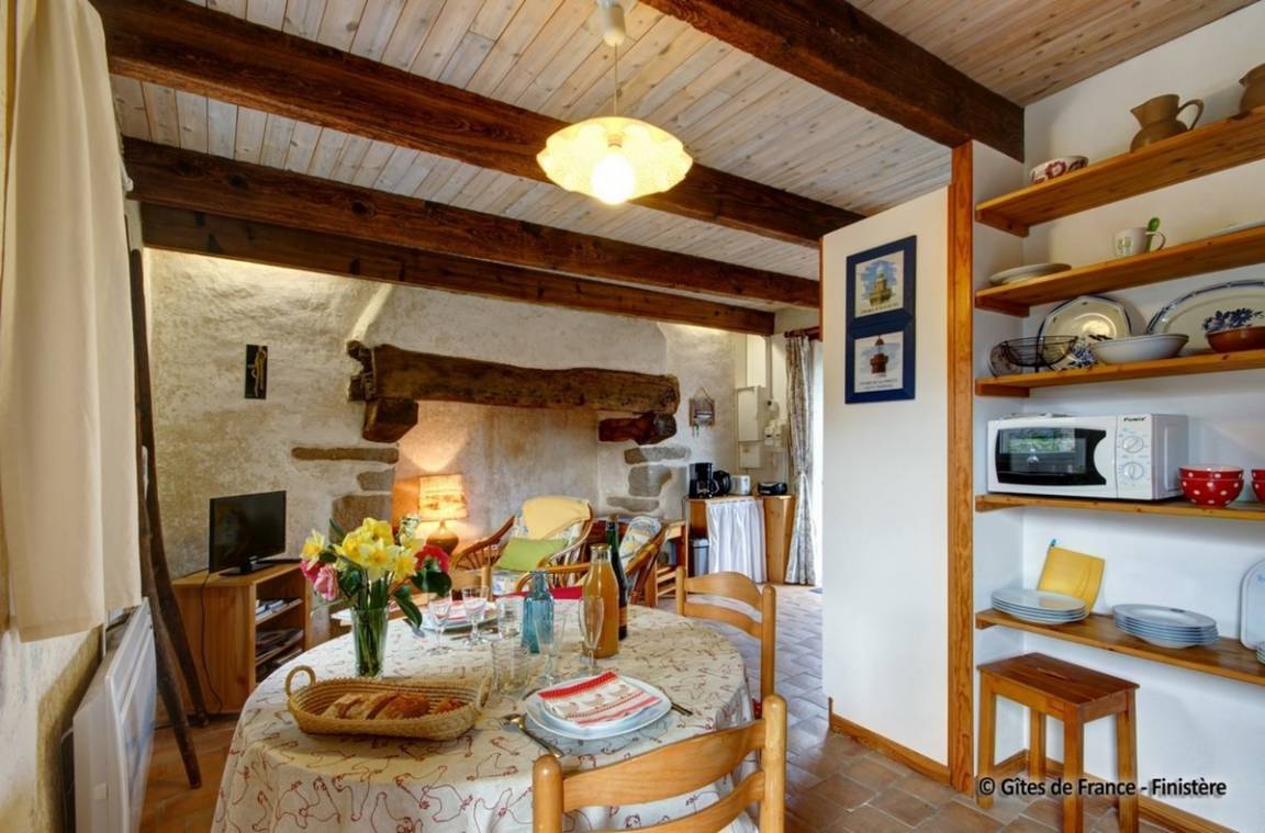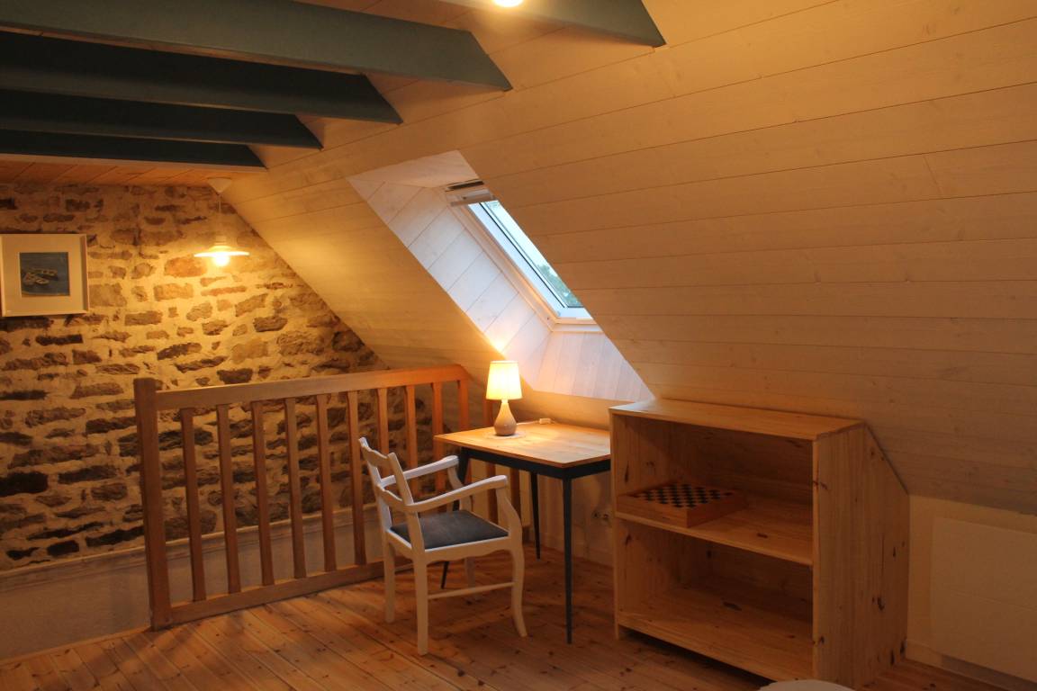 Angrenzender Gîte im Dorf von Combrit nur 4km von den feinen Sandstränden entfernt: Bett ist bezogen. EG: Wohn-/Esszimmer mit Kochecke, begehbare Dusche, sep. WC. 1.Stock: Mezzanine mit Doppelbett (Bettbreite 1.60m). E-Heizung. Garten, Gartenmöbel, Grill, Schaukel. überdachter Platz. Abstellplatz für Fahrräder.