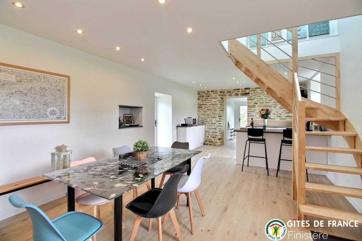 „Excellent séjour passé dans ce magnifique gîte spacieux complètement rénové à neuf trés calme où rien ne manque.Nous avons été accueillis par les propriétaires trés gentils et merci à eux pour leurs délicates attentions.Ce gîte est trés bien situé pour visiter le Finistère. Bravo pour cette trés belle rénovation aménagée avec goût.“