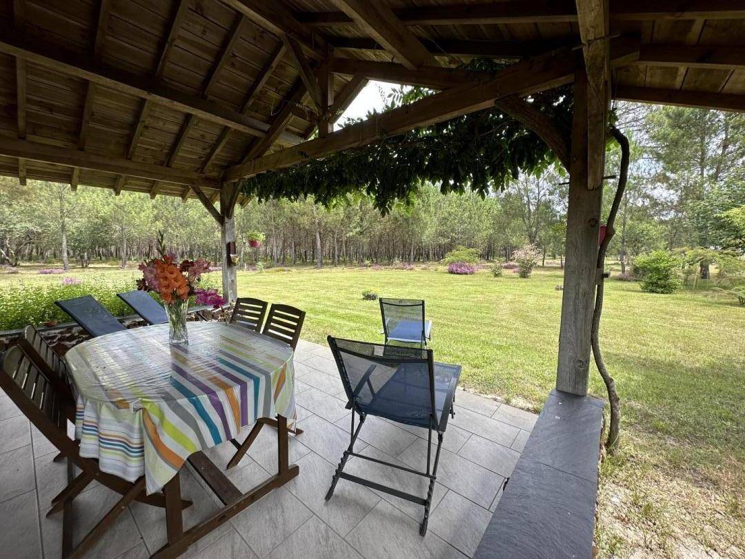 Sie werden eine schöne überdachte Terrasse mit Gartenmöbeln und Plancha mit Blick auf den Wald genießen.