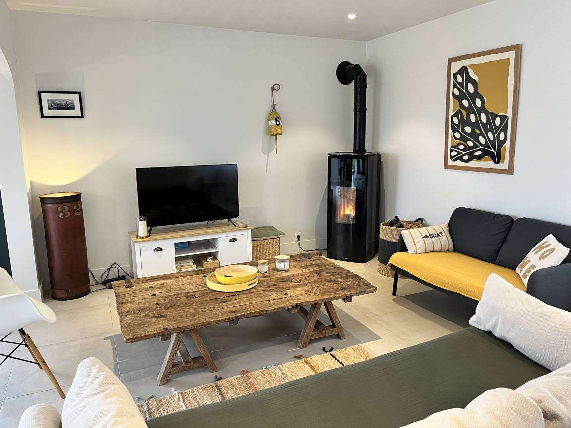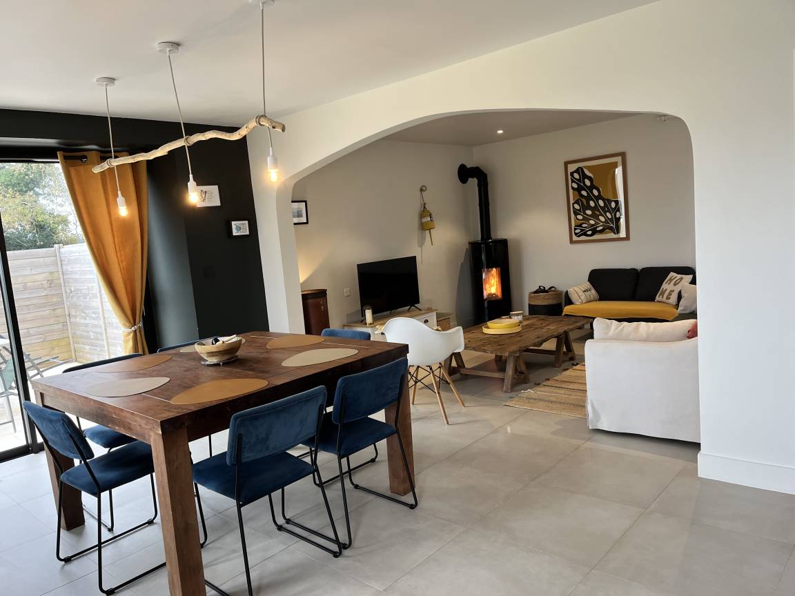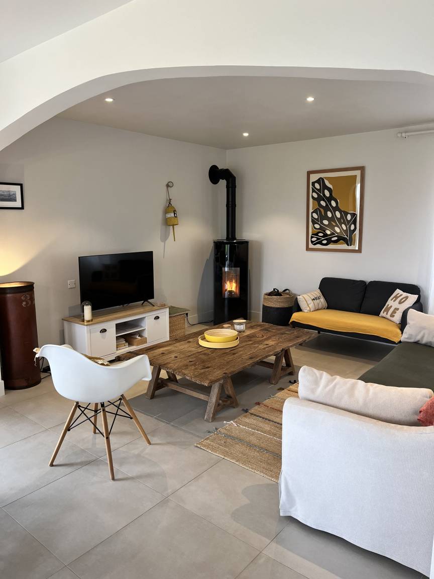 „Hôte discret, acceuillant et disponible au besoin. Très belle localisation au calme et proche des plage. Belle vue. Pellets fournis pour le poêle. L'espace intérieur convient parfaitement pour un groupe de 3 couples. Le plus: La sapin et les petites décos de Noël Très agréables pour passer un séjour sur cette période de fêtes.“