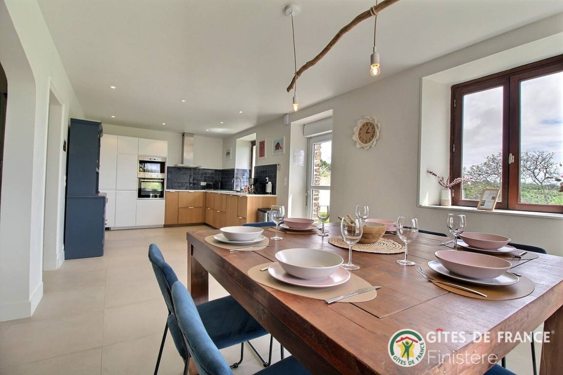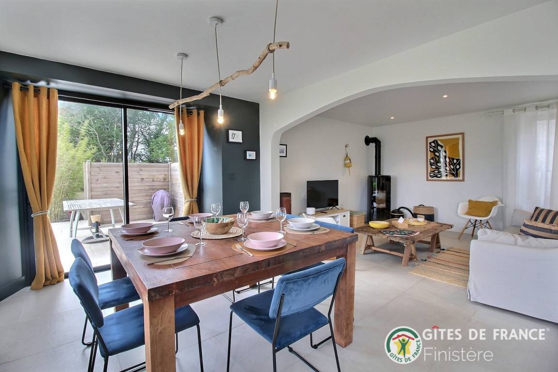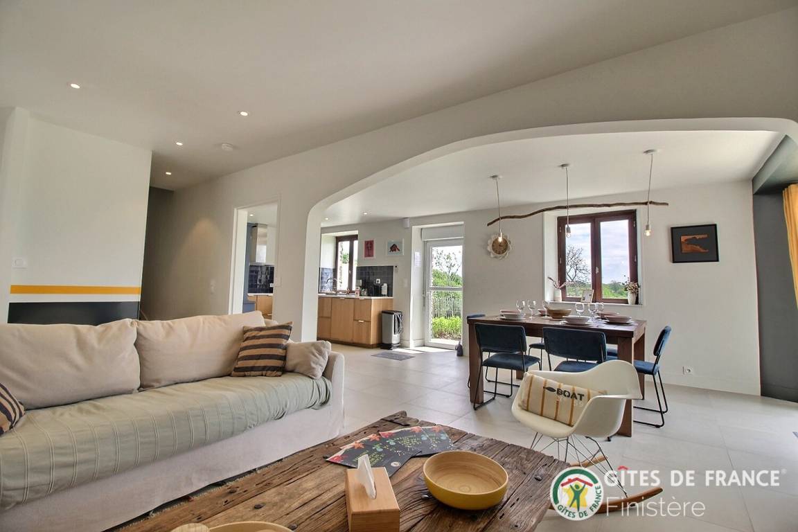 „Nous avons passé une très belle semaine en famille à la Toussaint - la maison est très agréable: Spacieuse, lumineuse, joliment décorée. Très bien équipée aussi, literie très bonne et le petit plus: Le poele programmable pour avoir chaud au réveil. Nous avons aussi apprécié le jardin pour nos enfants et la belle vue dégagée. Tres beau coin aussi de Bretagne à découvrir. Nous recommandons .“