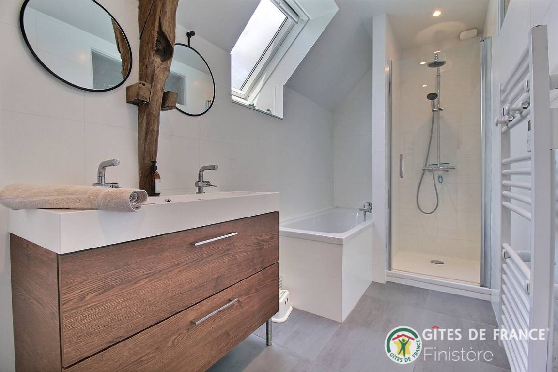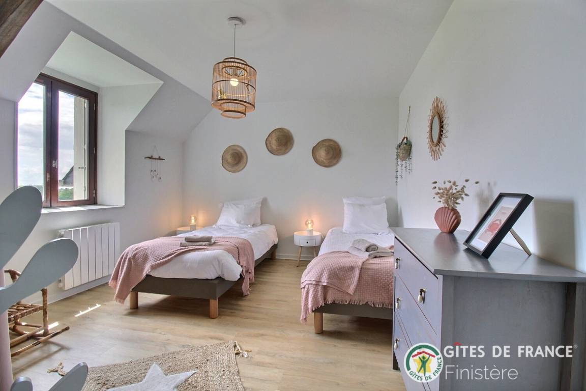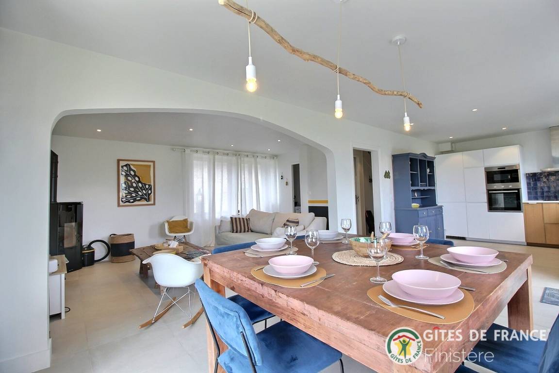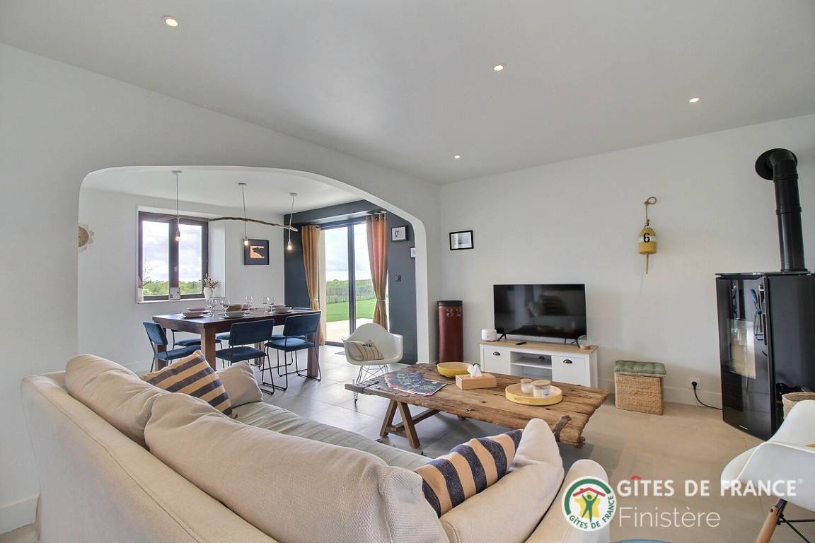 „Nous avons passé une très belle semaine en famille à la Toussaint - la maison est très agréable: Spacieuse, lumineuse, joliment décorée. Très bien équipée aussi, literie très bonne et le petit plus: Le poele programmable pour avoir chaud au réveil. Nous avons aussi apprécié le jardin pour nos enfants et la belle vue dégagée. Tres beau coin aussi de Bretagne à découvrir. Nous recommandons .“