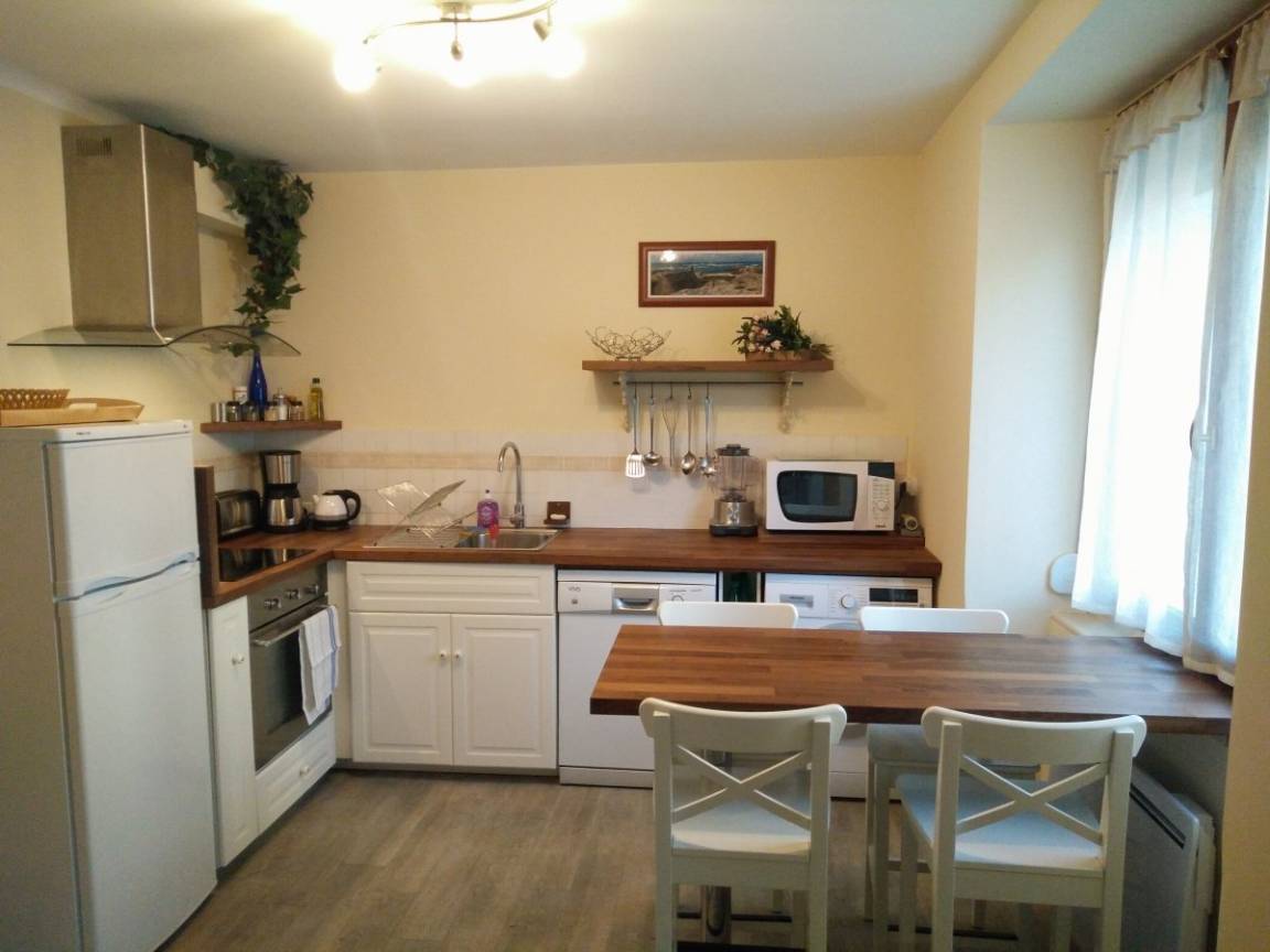 „Sehr stilvoll eingerichtete Unterkunft, bestens ausgestattet, sehr ruhige Lage am Stadtrand, sehr schöne Terrasse, Besuch von Rehen und Füchsen, trotzdem sehr nah an der Ville Close. Haben uns sehr wohl gefühlt. Wir kommen gerne wieder!“