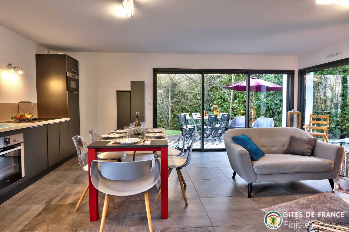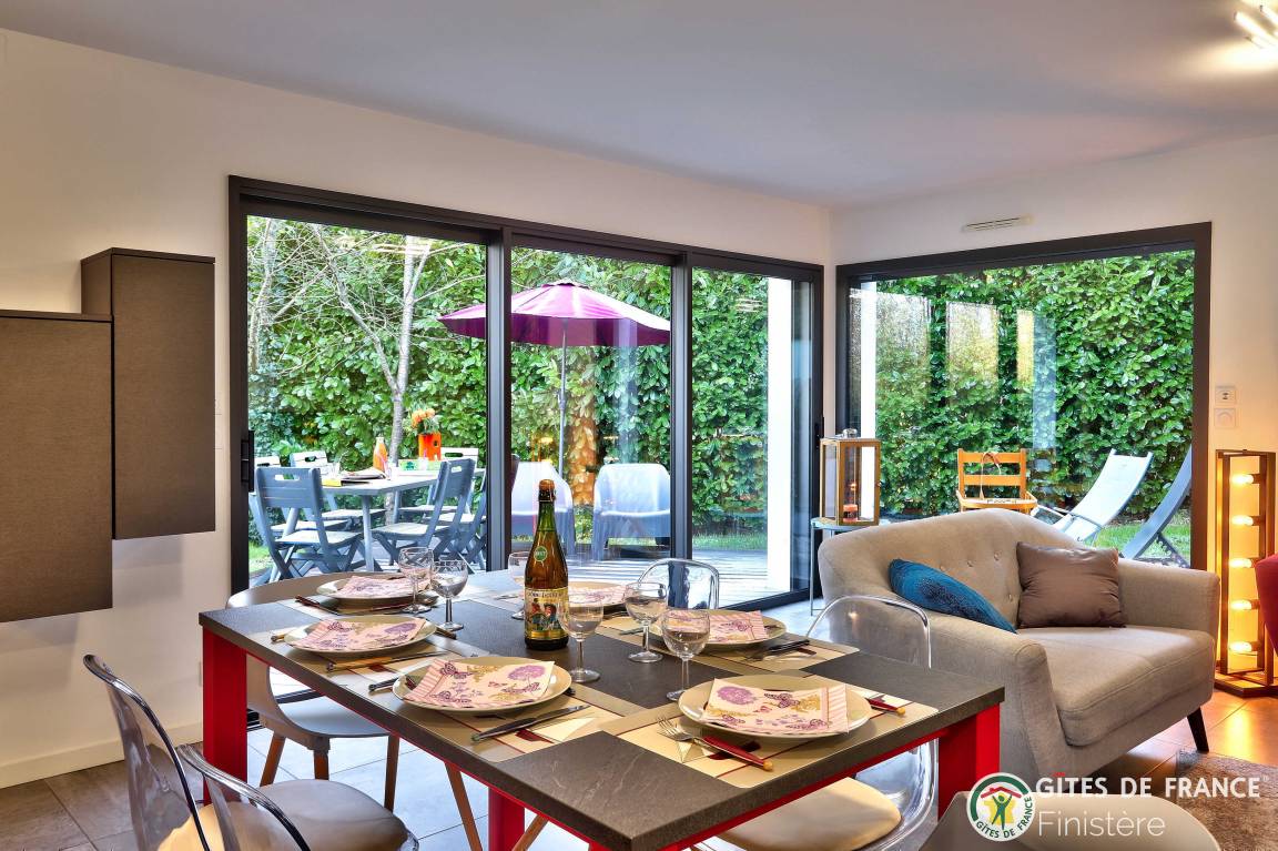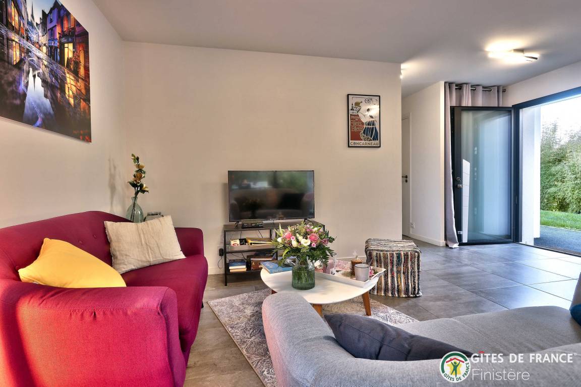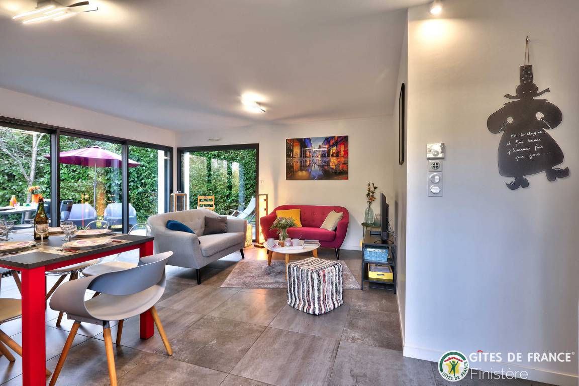 „Très bon accueil d'Isabelle la propriétaire, attentionnée, respectueuse, très souriante, cela fait beaucoup de bien d'être accueilli ainsi. Maison très agréable, bien équipée, et tout sur place pour cuisinier et procéder au ménage. Chambres spacieuses, literies de bon niveau, au calme, située à 6 minutes de concarneau et magasins à proximité. Moment très agréable.“