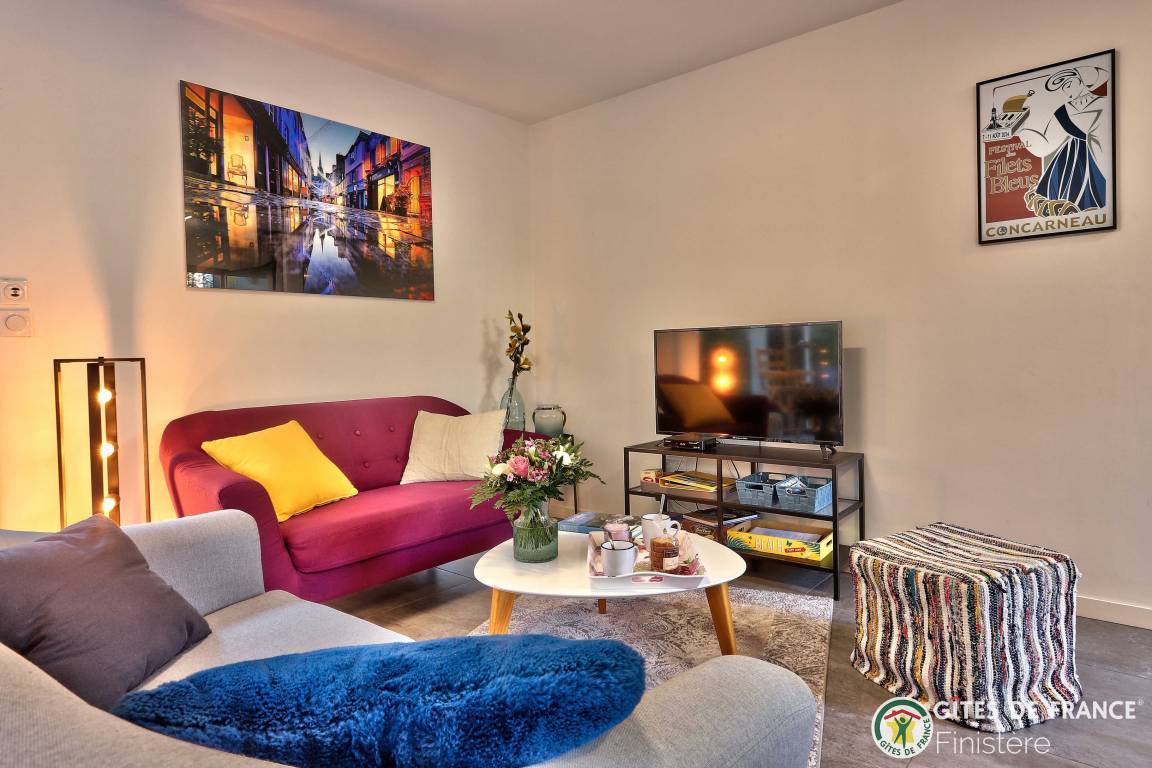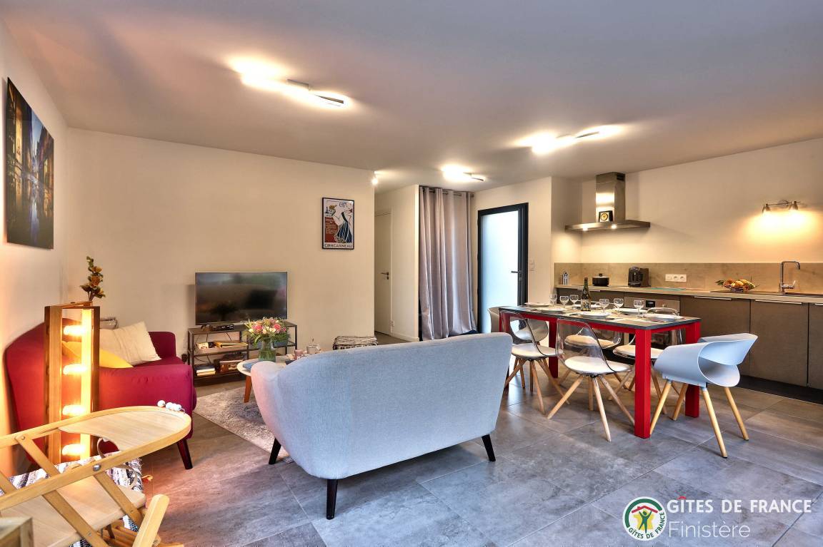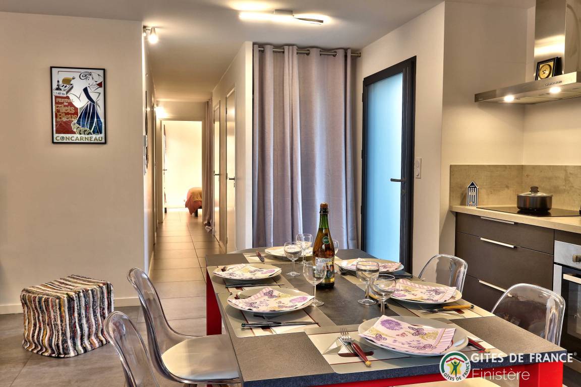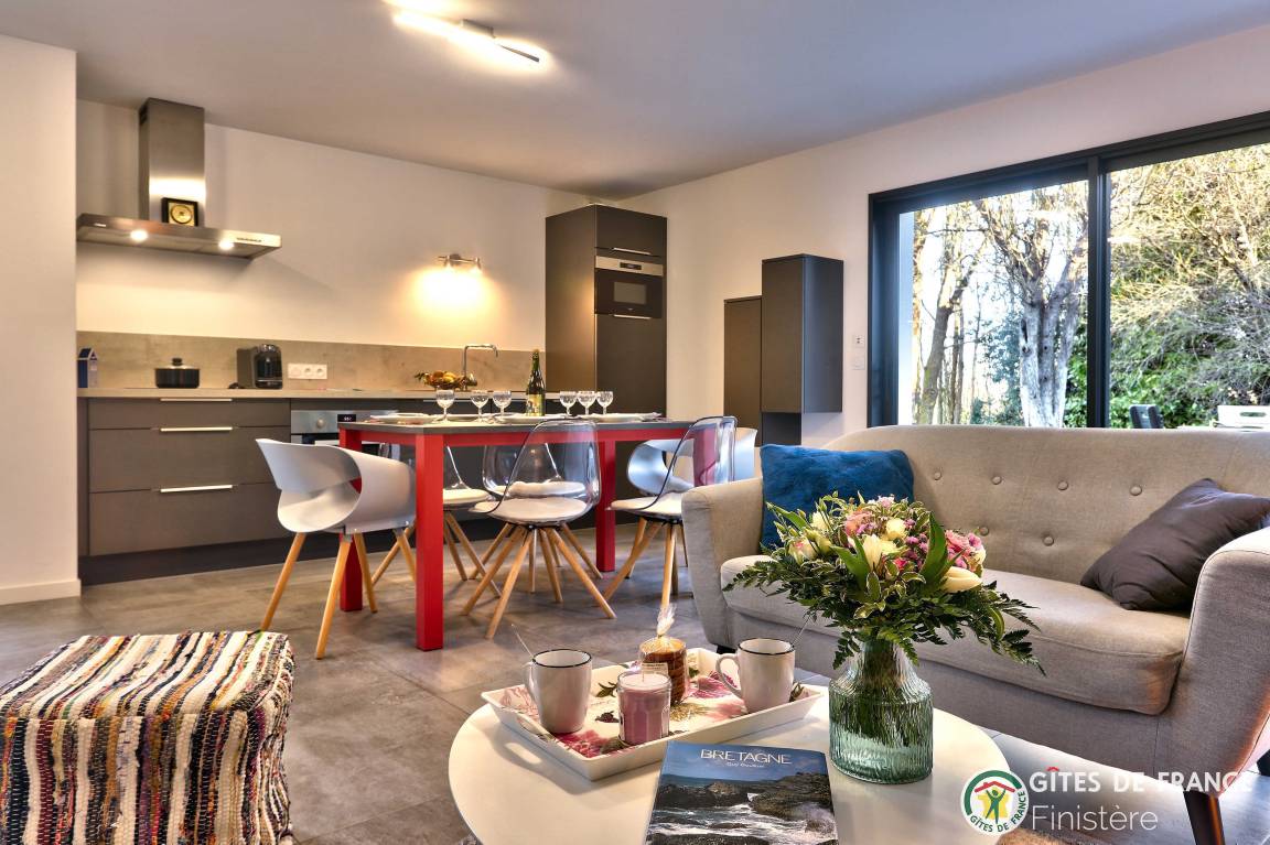 „Très bon accueil d'Isabelle la propriétaire, attentionnée, respectueuse, très souriante, cela fait beaucoup de bien d'être accueilli ainsi. Maison très agréable, bien équipée, et tout sur place pour cuisinier et procéder au ménage. Chambres spacieuses, literies de bon niveau, au calme, située à 6 minutes de concarneau et magasins à proximité. Moment très agréable.“