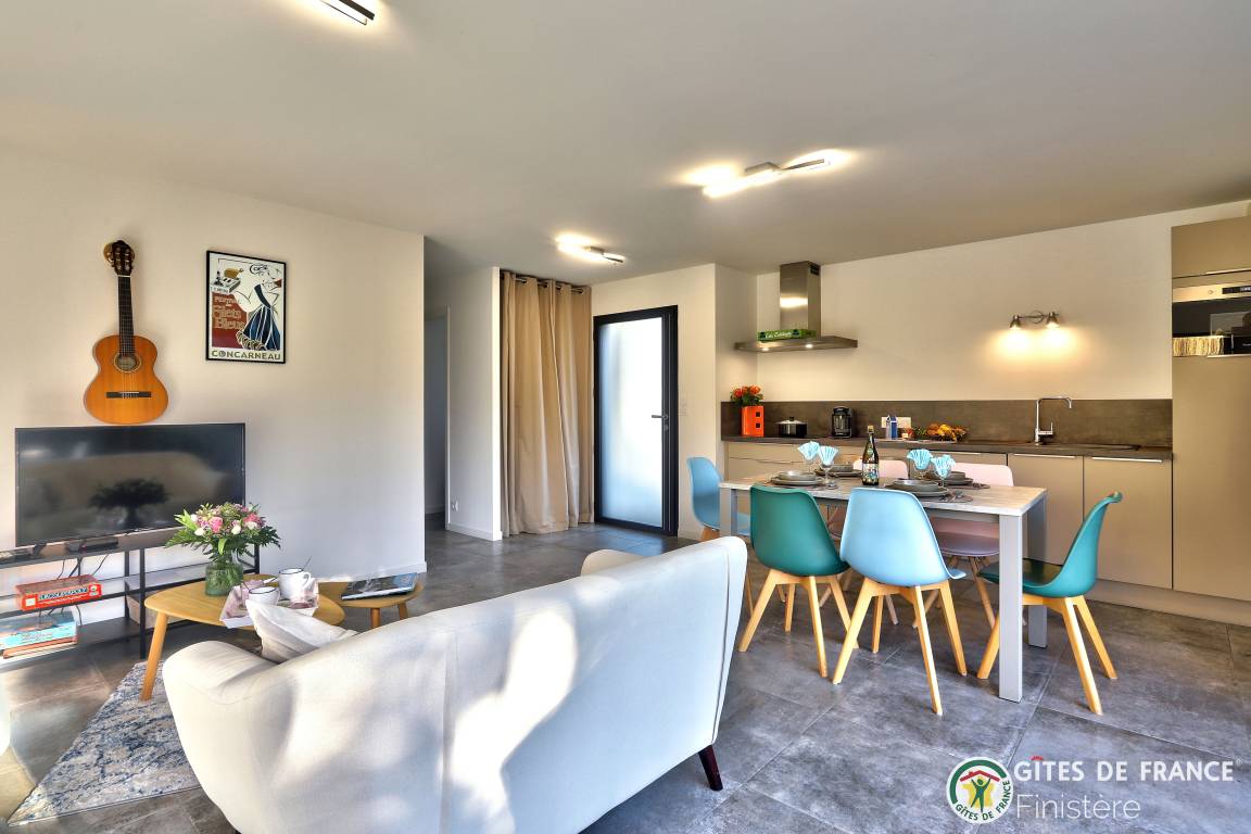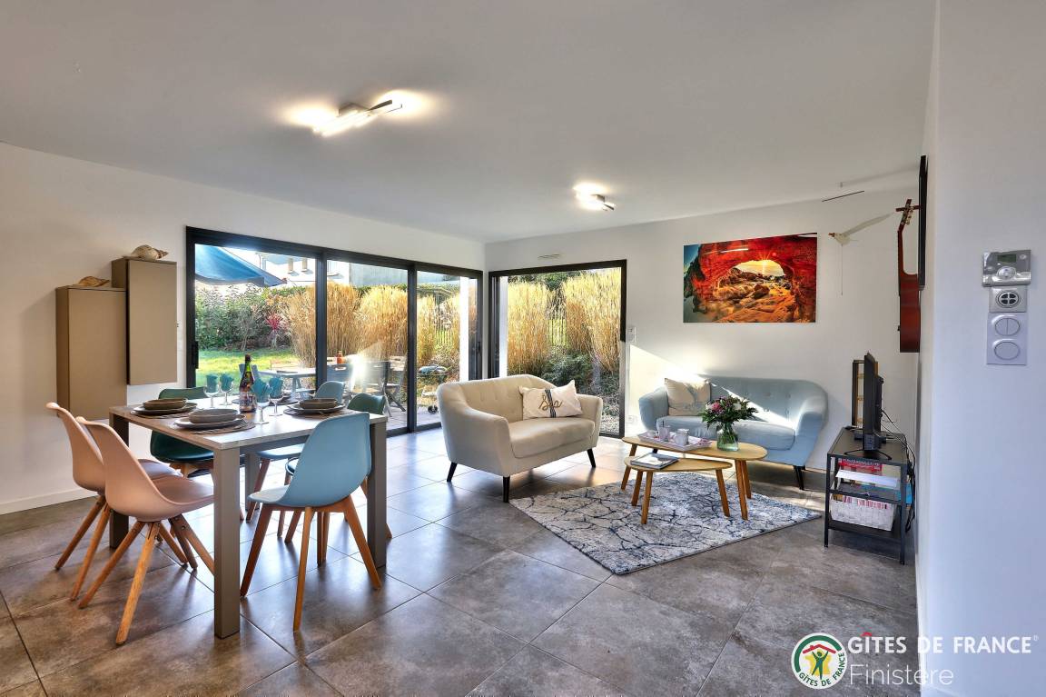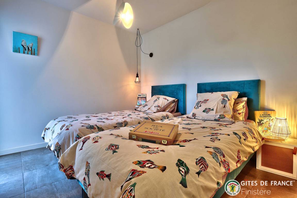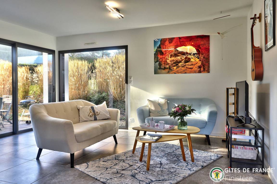 „Nous avons passé un excellent séjour dans ce gîte à Concarneau. L’emplacement est idéal: Au calme, tout en étant à proximité du centre-ville et des plages. La literie est de très bonne qualité, ce qui nous a permis de vraiment bien nous reposer. L’environnement est paisible et verdoyant, parfait pour se détendre et se ressourcer. Une adresse que nous recommandons sans hésiter pour un séjour reposant en Bretagne.“