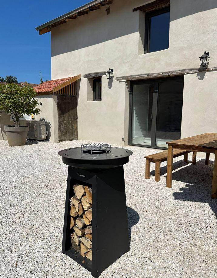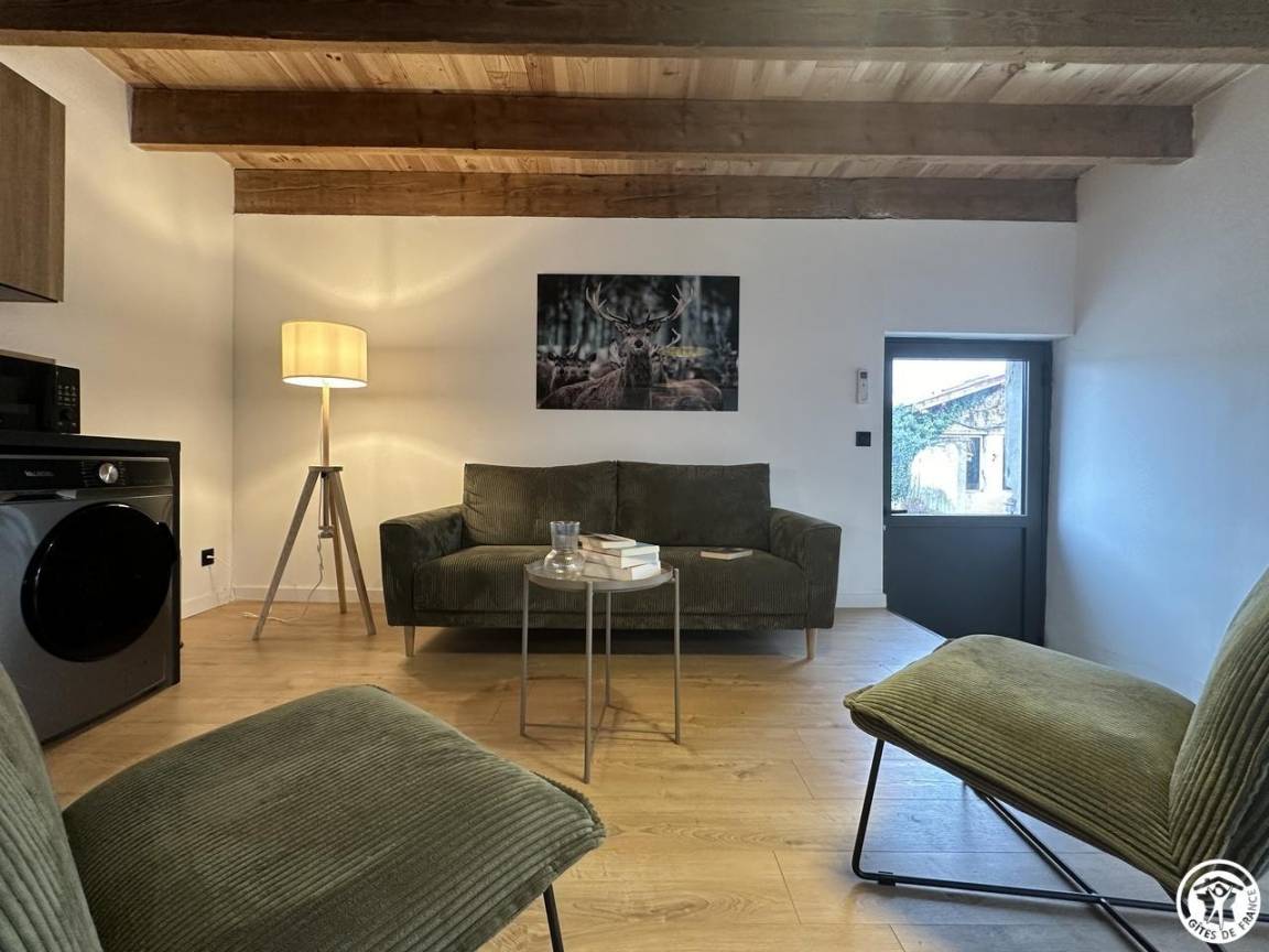 „GITE AGREABLE A VIVRE INTERIEUREMENT ET EXTERIEUREMENT MAIS NE CONVIENT PAS A DES PERSONNES AYANT DES DIFFICULTES A MARCHER CAR PLUSIEURS MARCHES PLUS HAUTES QUE LA NORME SONT OBLIGATOIRES POUR ACCEDER AU GITE ET A L'ESPACE EXTERIEUR. L EQUIPEMENT EST COMPLET HORMIS UNE RESERVE CONCERNANT LA CAFETIERE EXPRESSO QUI A MON AVIS NE CONVIENT PAS POUR LES PETITS DEJEURNERS DE 10 PERSONNES.“