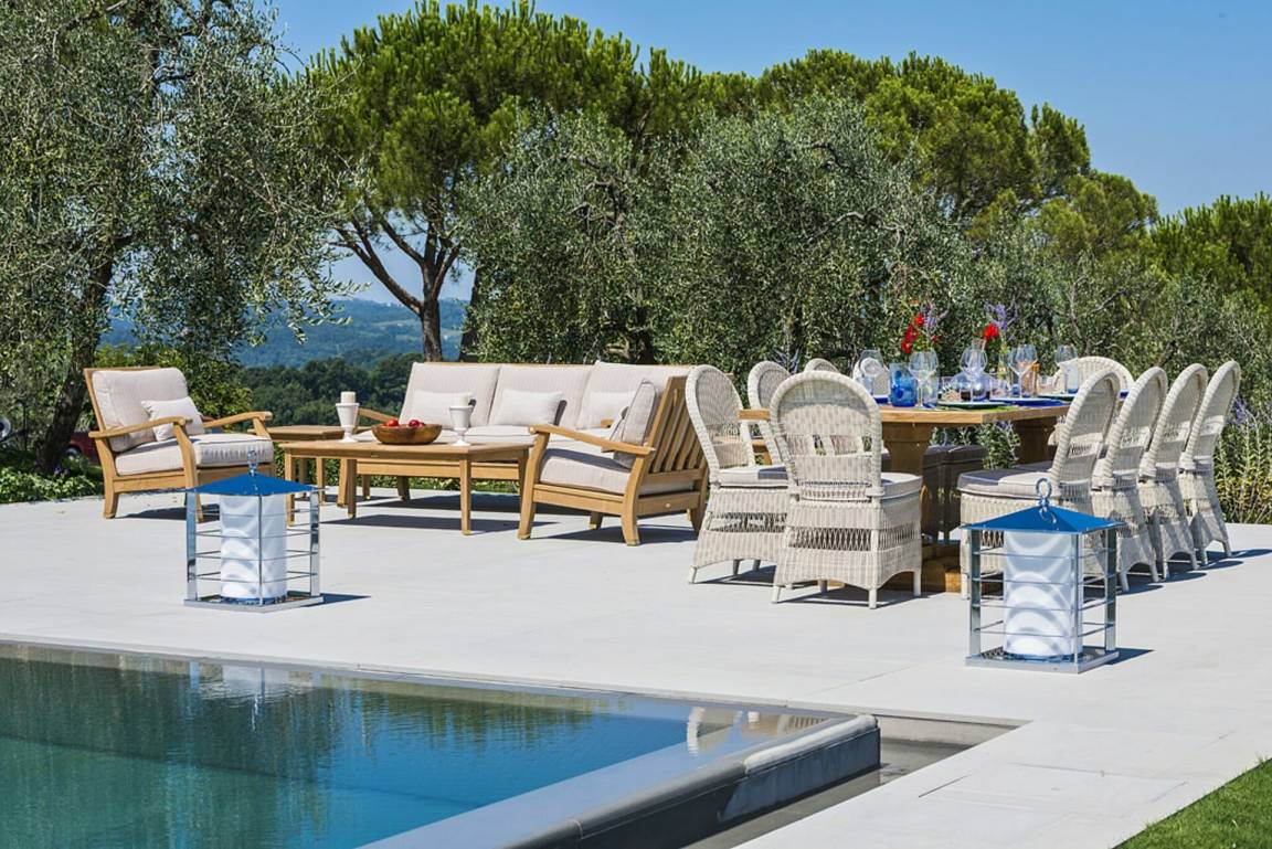Garten (4000 m²): Schwimmbad (privat, Breite: 13m, Länge: 7m, Außen), Grill, Außenbereich für das Essen im Freien, Esstisch, Gartenmöbel, Sonnenliege.