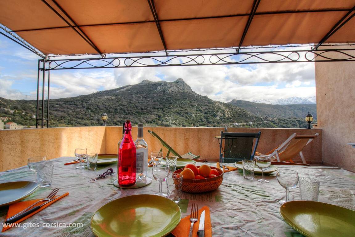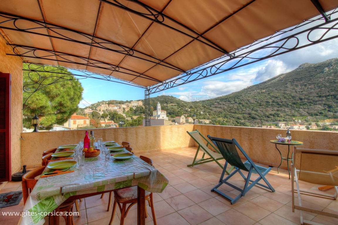 „Grande maison avec vue exceptionnelle sur le village de Corbara et sur la Balagne. Avons apprécié la grande terrasse protégée et le garage. Manque peut-être la climatisation mais les ventilateurs sont très efficaces.“