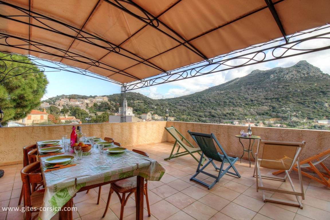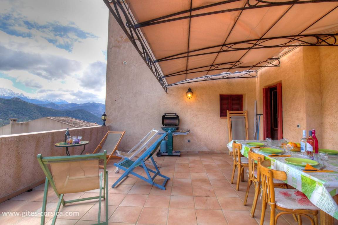 - 35 m² große Terrasse mit Blick auf die Berge und das Dorf.