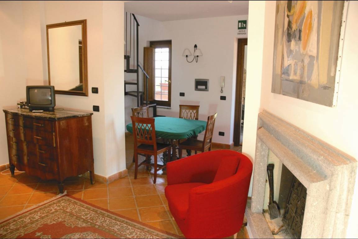Über eine Eisentreppe erreicht man die Mansarde: kleines Wohn-/Esszimmer mit Kochnische und Doppelbet, kleines Bad mit Dusche und Panoramaterrasse.