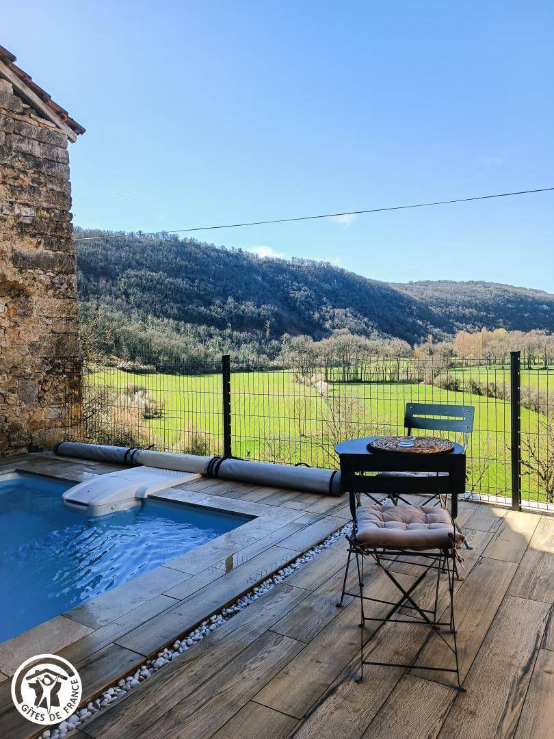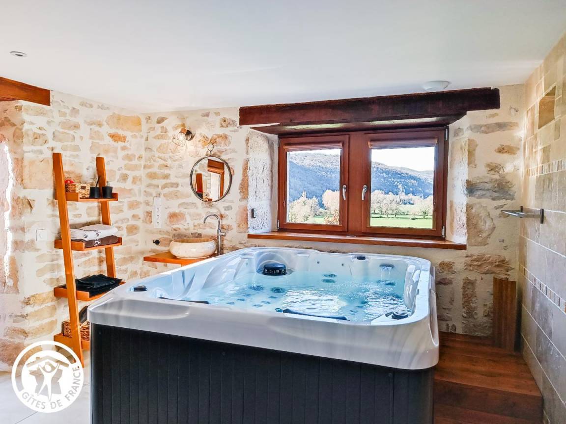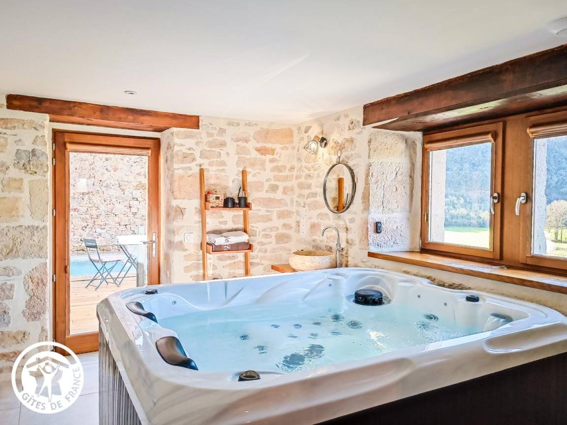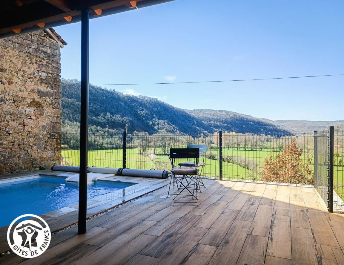 „Maison restaurée avec finesse, très bien équipée. Bien située pour visiter les beaux villages aux alentours. Le jacuzzi, la piscine avec sa vue imprenable en font un lieu d exception. Merci et bravo aux proprietaires“