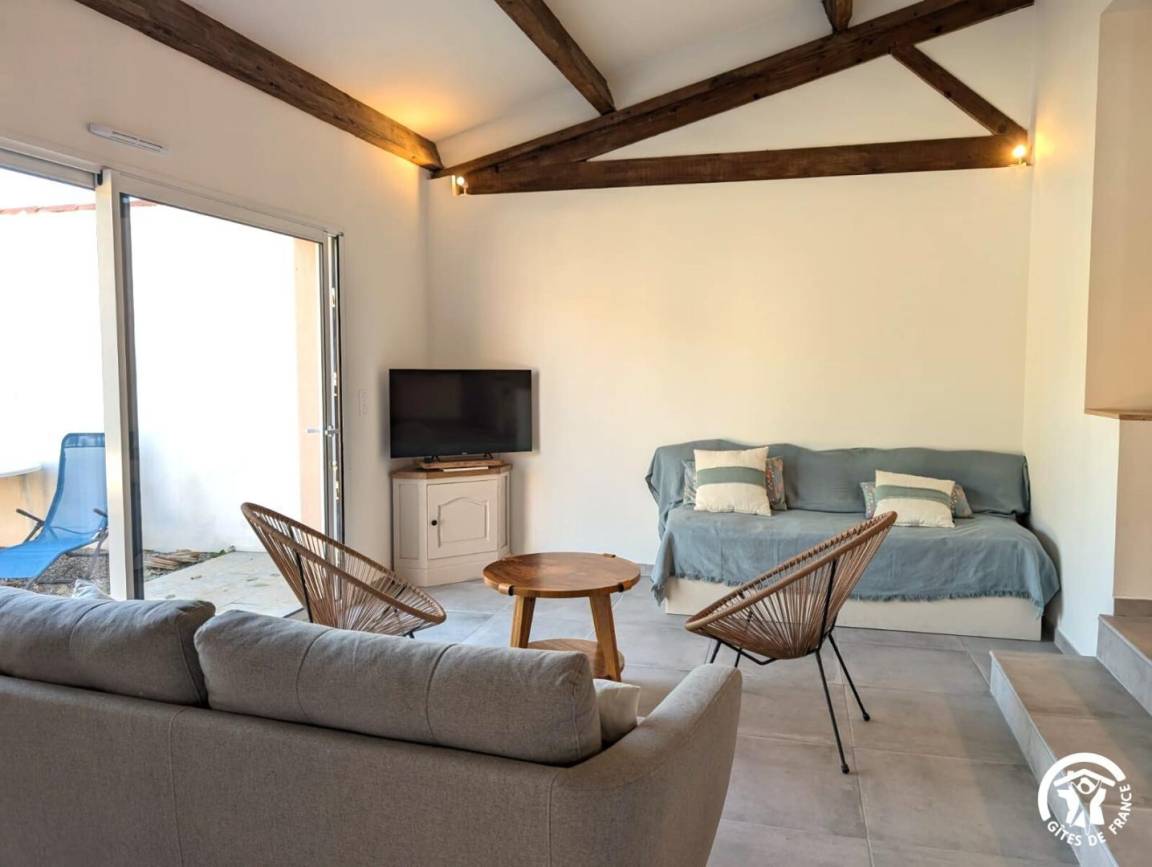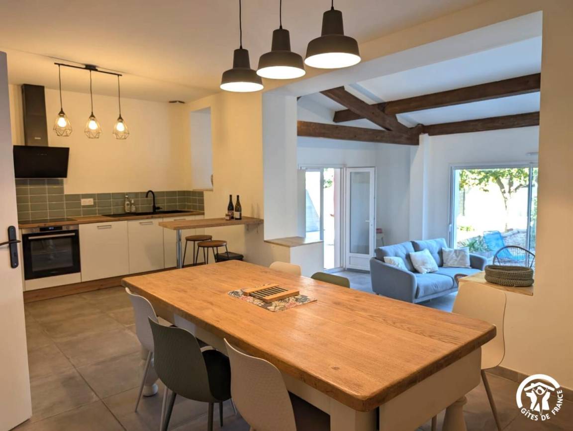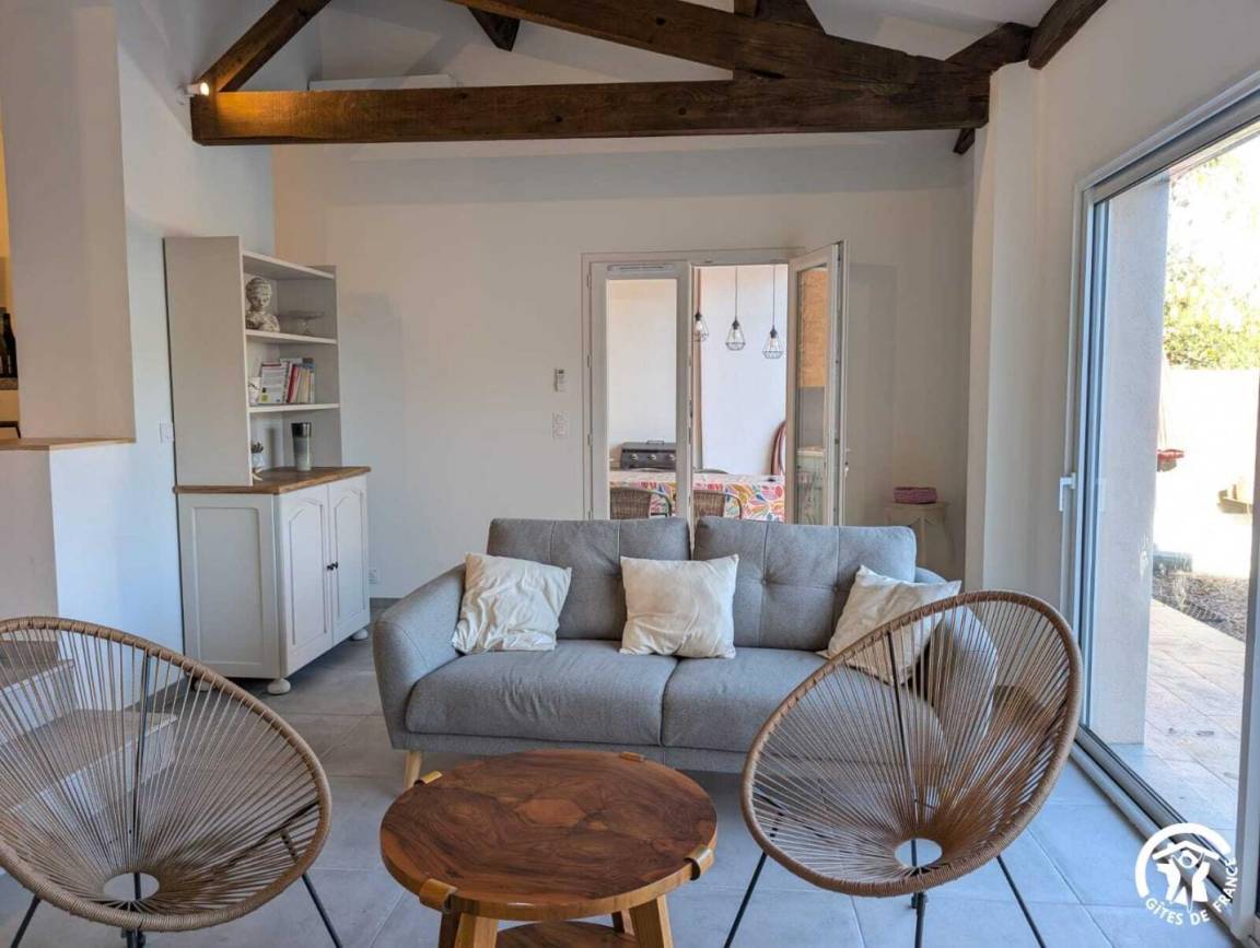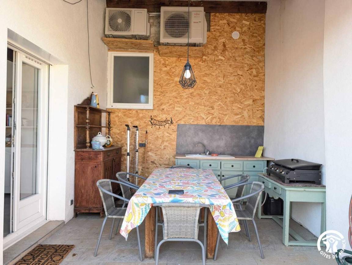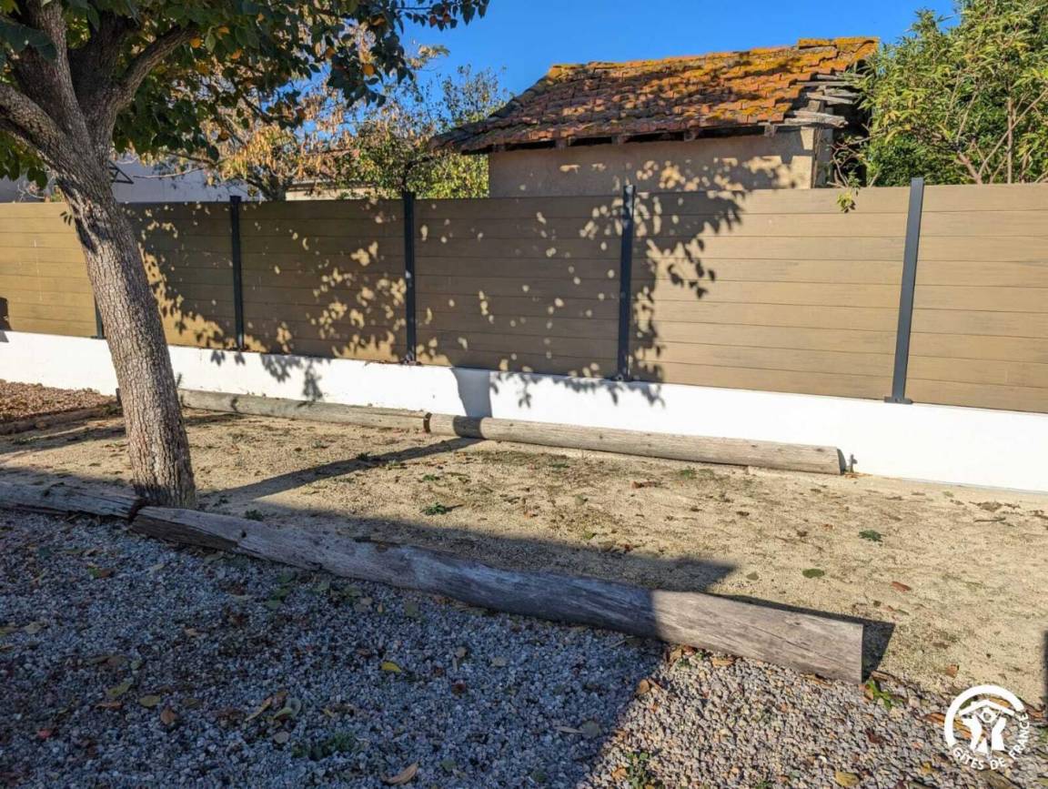 Im Außenbereich können Urlauber einen umzäunten Privatgarten mit Gartenmöbeln und einem Bouleplatz genießen. Außerdem gibt es eine überdachte Terrasse mit einer Sommerküche mit Plancha, Spüle und großem Esstisch.