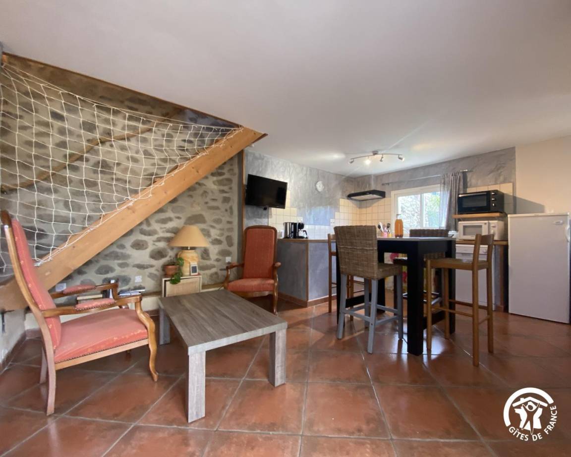 „Petit Cortal Catalan très confortable et aménagé avec gout par Ludovic. Au RdC nous avons apprécié la fraicheur des murs en pierre. A l'étage la climatisation efficace et discrète. Très agréable en cette première semaine de canicule. L'espace extérieur est très confortable avec ses différents coins ombragés. le Cortal est situé dans une région extrêmement riche en "plus beaux villages de france", en Abbayes, Eglises Romanes, prieurés...Les conseils avisés de Ludovic nous ont bien aidé à organiser notre découverte de la région. un lieu superbe pour se resourcer“