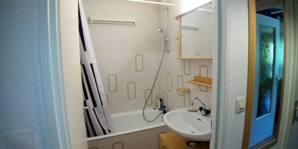 Fläche von ungefähr 28 m². 1te Etage. Wohnzimmer mit Klappschlafcouch (140*190), ausklappbarer Schlafsessel (80*190). Schlafbereich mit 2 Stockbetten (90*190). Kochnische mit Fonduegerät, Raclettegerät, Wasserkocher, 2 Kaffeemaschinen (électrique et Tassimo), Backofen, Toaster, Waschmaschine, Mikrowellenherd, Glaskeramikkochfeld, Kühl-Gefrier-Kombination. Badezimmer mit Badewanne. separates WC. Balkon. Waschmaschine. Die oberen Betten sind nicht für Kinder unter 6 Jahren geeignet.