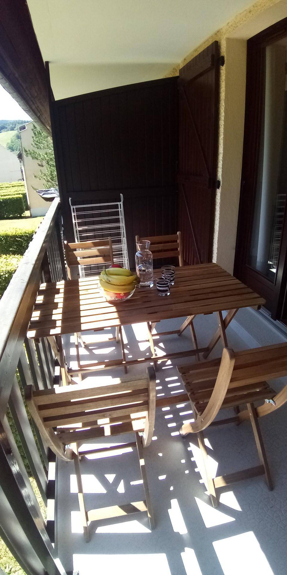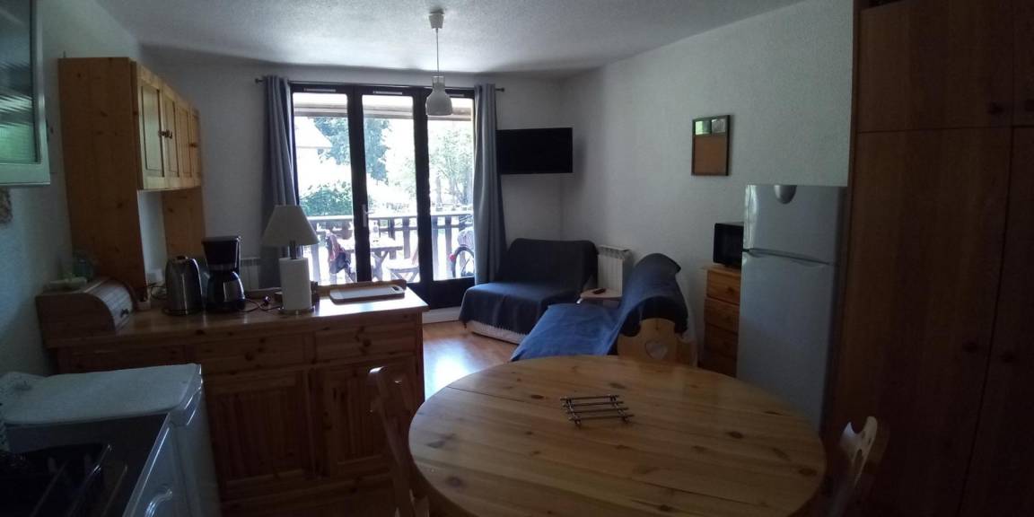 Fläche von ungefähr 28 m². 1te Etage. Wohnzimmer mit Klappschlafcouch (140*190), ausklappbarer Schlafsessel (80*190). Schlafbereich mit 2 Stockbetten (90*190). Kochnische mit Fonduegerät, Raclettegerät, Wasserkocher, 2 Kaffeemaschinen (électrique et Tassimo), Backofen, Toaster, Waschmaschine, Mikrowellenherd, Glaskeramikkochfeld, Kühl-Gefrier-Kombination. Badezimmer mit Badewanne. separates WC. Balkon. Waschmaschine. Die oberen Betten sind nicht für Kinder unter 6 Jahren geeignet.