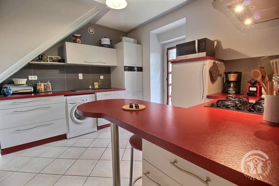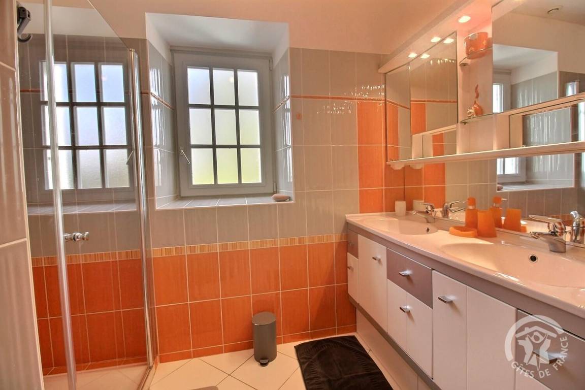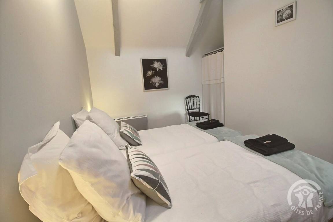 - Etage: ein erstes Schlafzimmer (2 90x190-Betten), ein zweites Schlafzimmer (1 160x200-Bett), ein Badezimmer mit Dusche, WC.