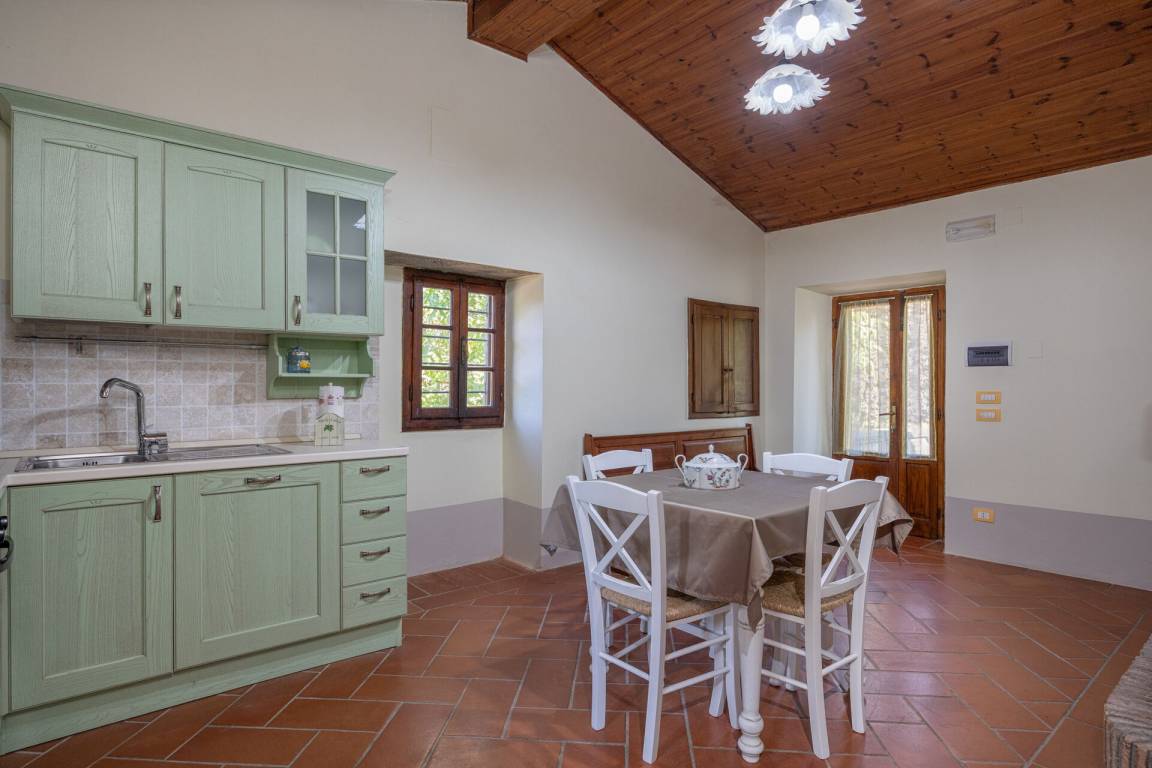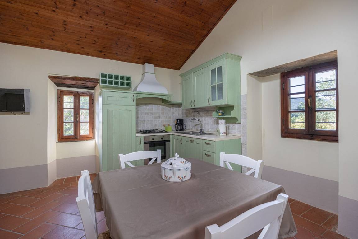 Küche: gut ausgestattete Küche, Esstisch (Personen: 6), Spülmaschine, Kühlschrank, Tiefkühler, Mikrowelle, Herd, Ofen, Toaster, Italienische Kaffeemaschine, Amerikanische Kaffeemaschine, WiFi Internet, Ausgang auf den Garten, Ausgang auf die Veranda.