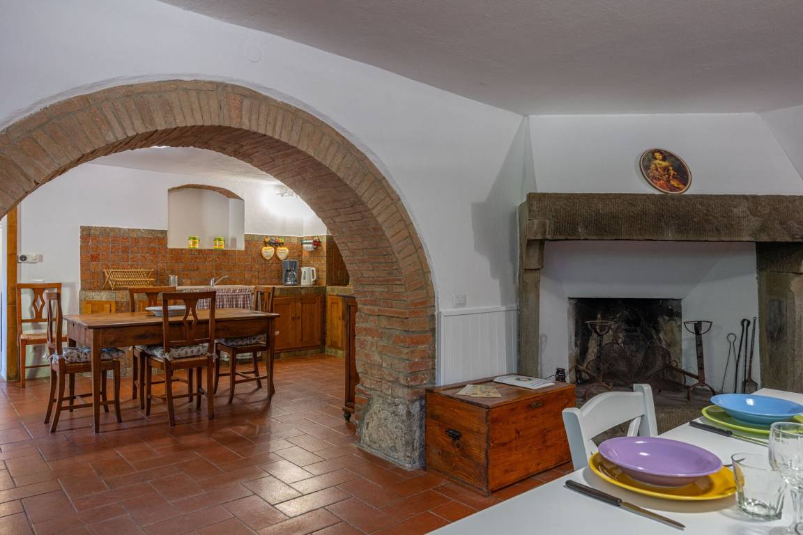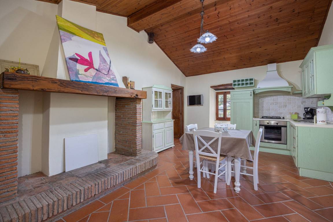 Wohnküche: gut ausgestattete Küche, Esstisch (Personen: 4), Spülmaschine, Kühlschrank, Tiefkühler, Herd, Ofen, Sofa, Kamin, WiFi Internet, Ausgang auf den Garten.