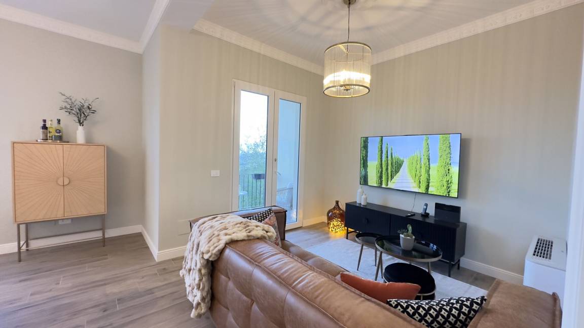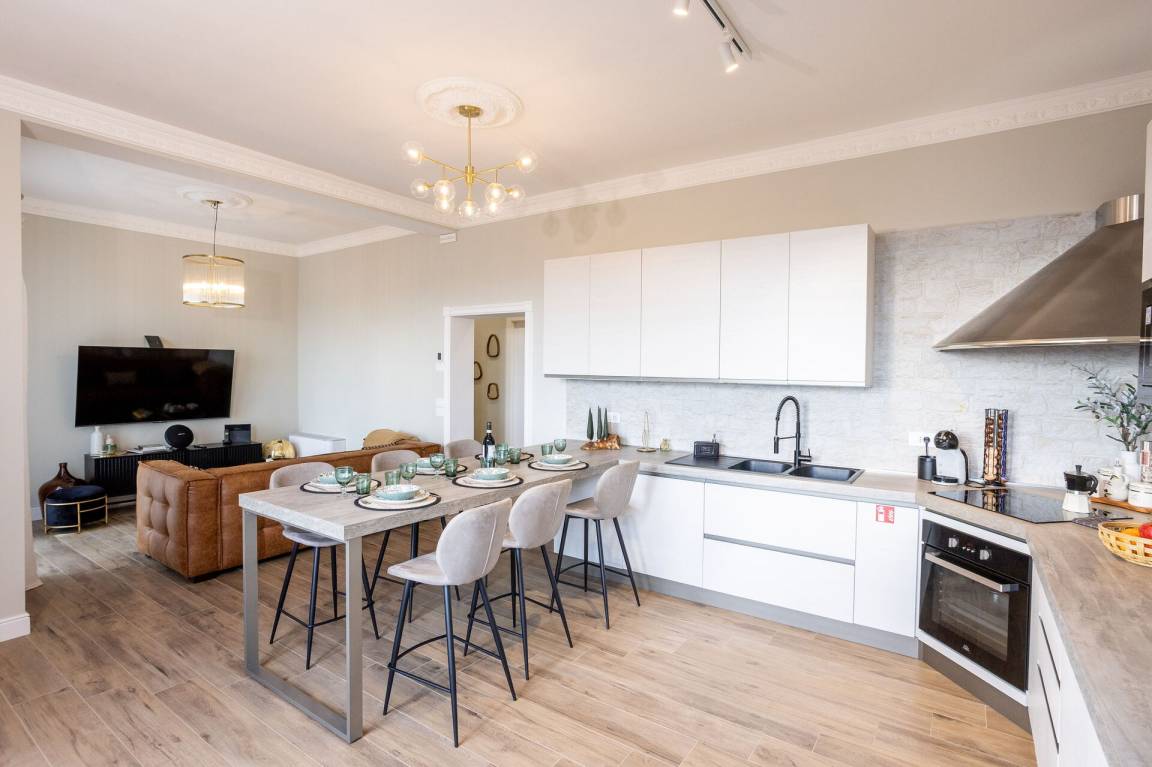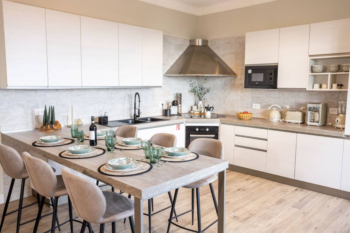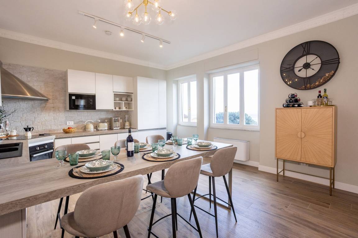 Wohnküche: gut ausgestattete Küche, Esstisch, Spülmaschine, Kühlschrank, Tiefkühler, Mikrowelle, Herd, Ofen, Toaster, Bügeleisen, Italienische Kaffeemaschine, Amerikanische Kaffeemaschine, Waschmaschine, Sofa, WiFi Internet, Klimaanlage, Satelliten-TV, CO2 Detektor, Ausgang auf den Balkon.