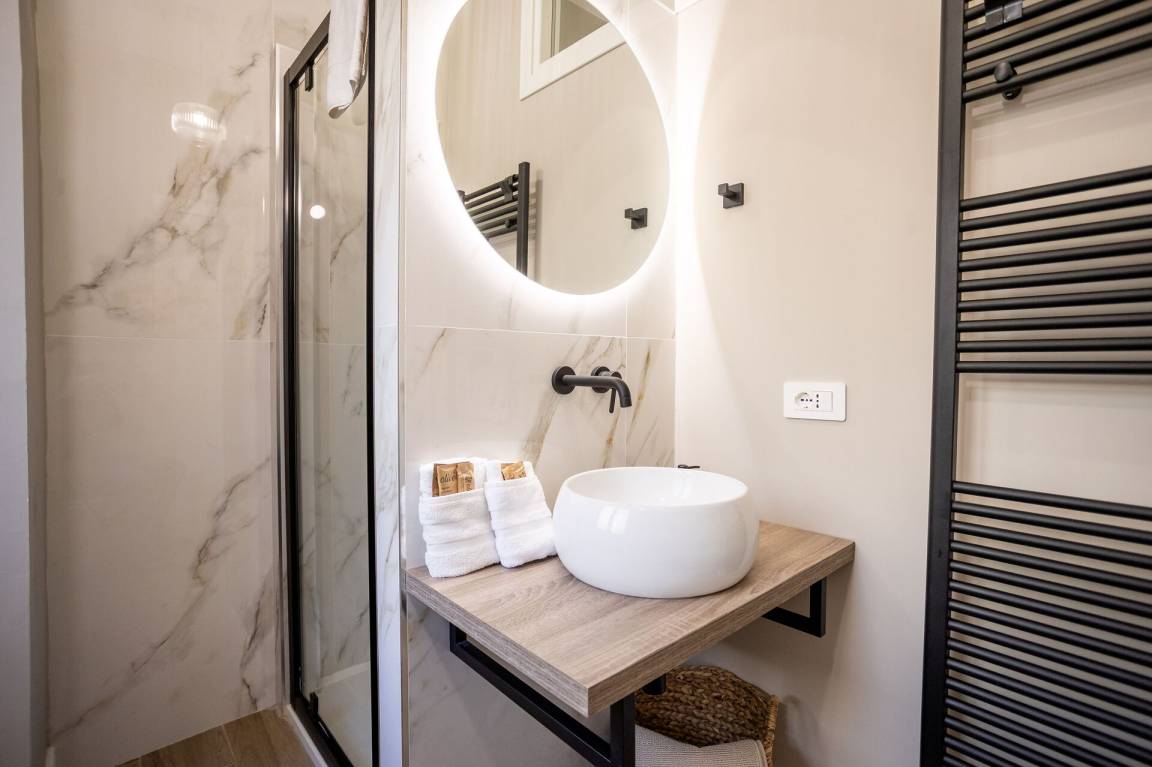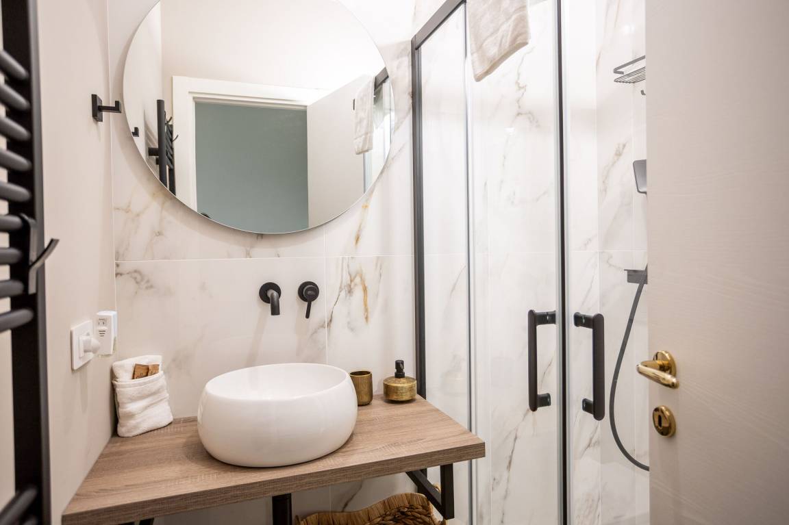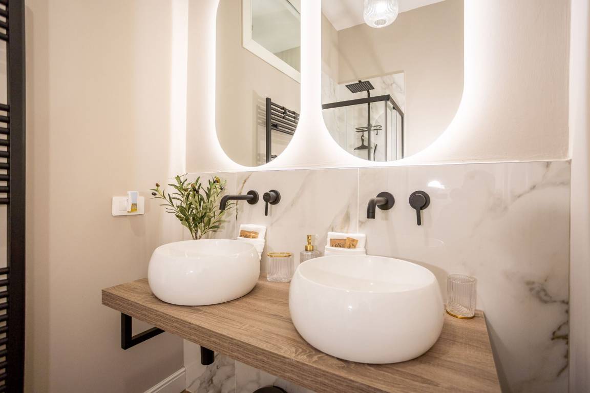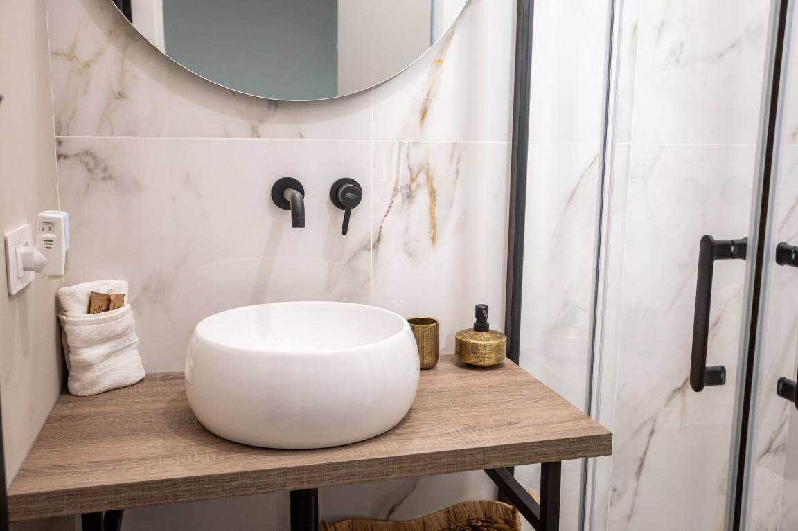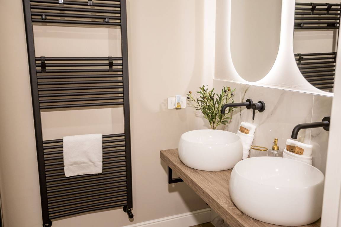 Badezimmer: Doppelwaschbecken, WC, Dusche, Fön, WiFi Internet.