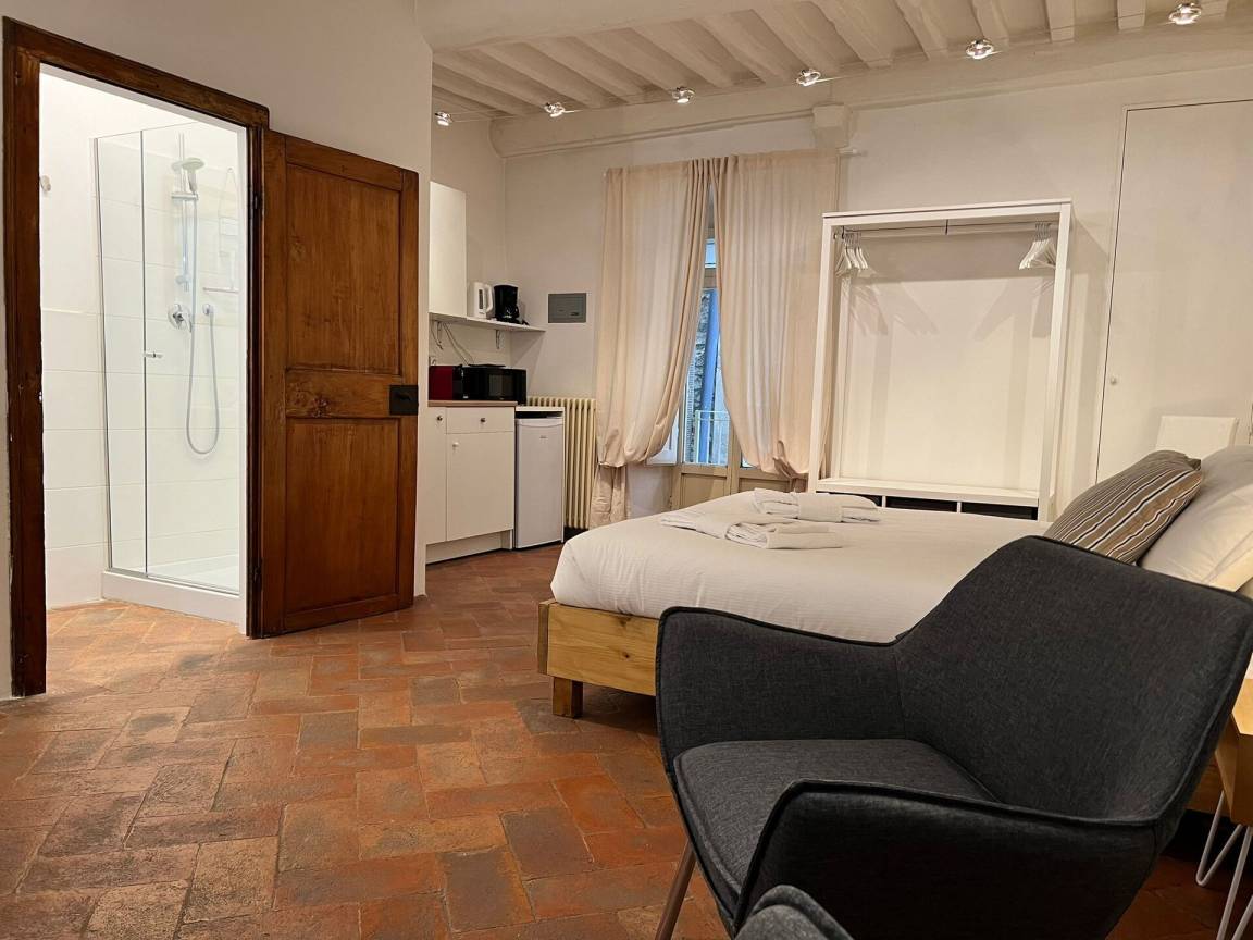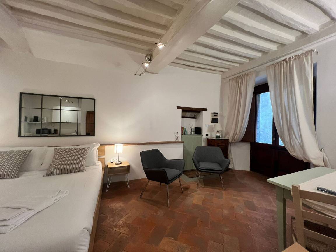 Il Sole (25 m²) ist eine eins-Zimmer Wohneinheit, die auf eins Etage gebaut ist, mit eins Badezimmer. Hier können bis zu zwei Gäste schlafen.