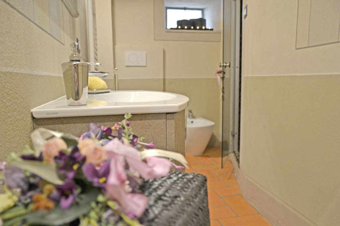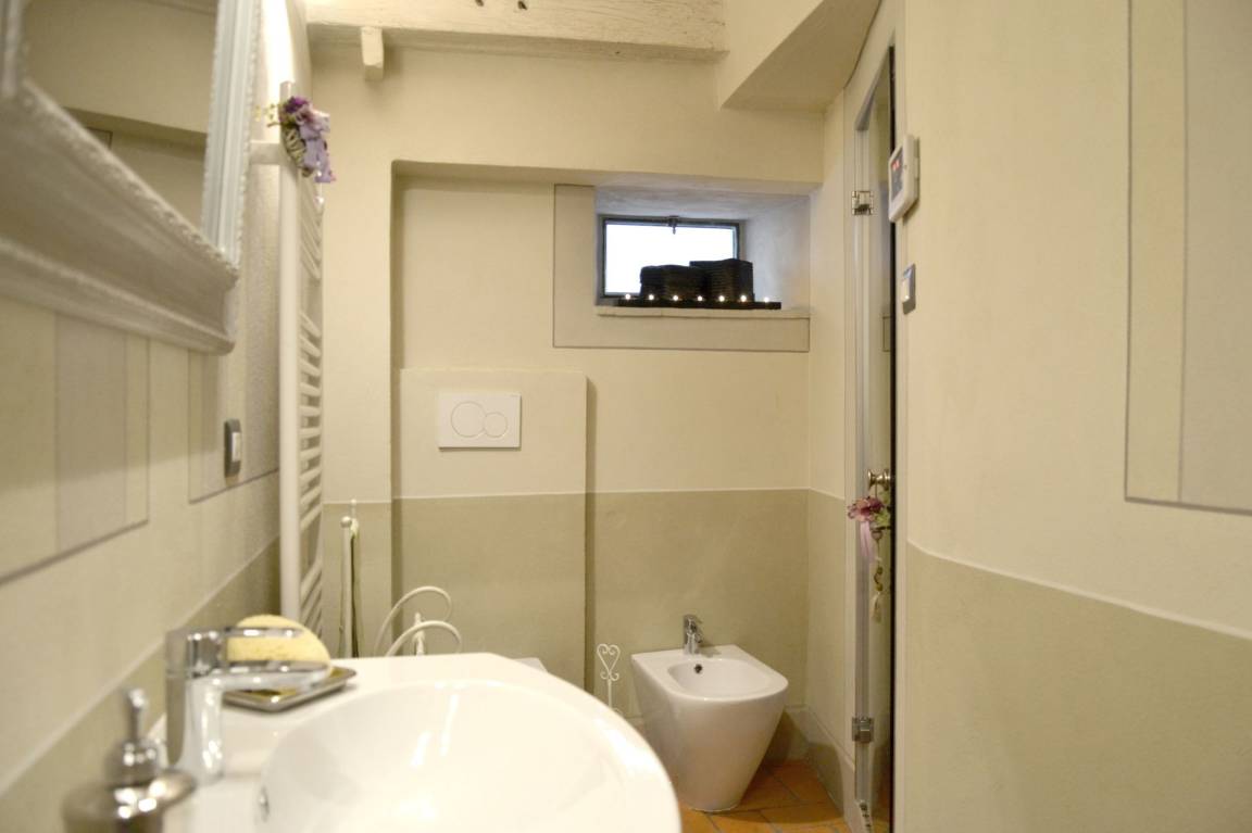 Badezimmer: Waschbecken, WC, Bidet, Dusche, Fön, WiFi Internet.