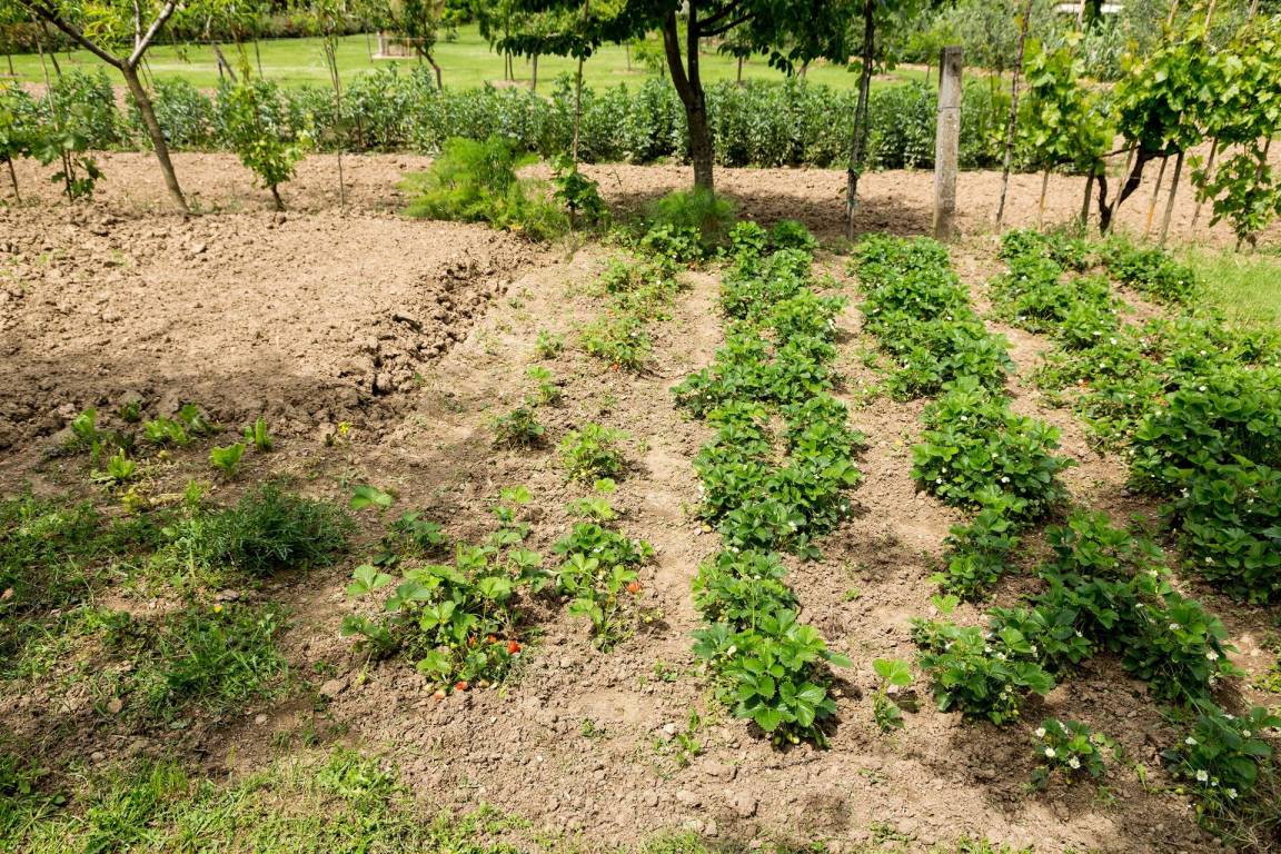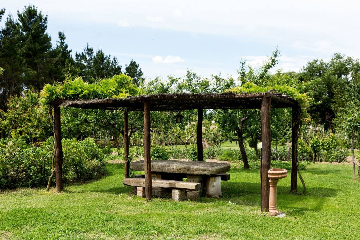 Garten (6000 m²): Außenbereich für das Essen im Freien, Gartenmöbel, zwei Sonnenliegen, umzäuntes Grundstück.