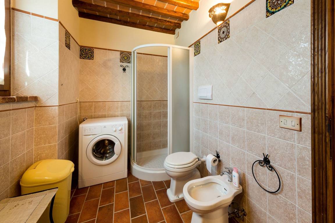 Badezimmer: Waschbecken, Bidet, Dusche, Fön, Waschmaschine, WiFi Internet.